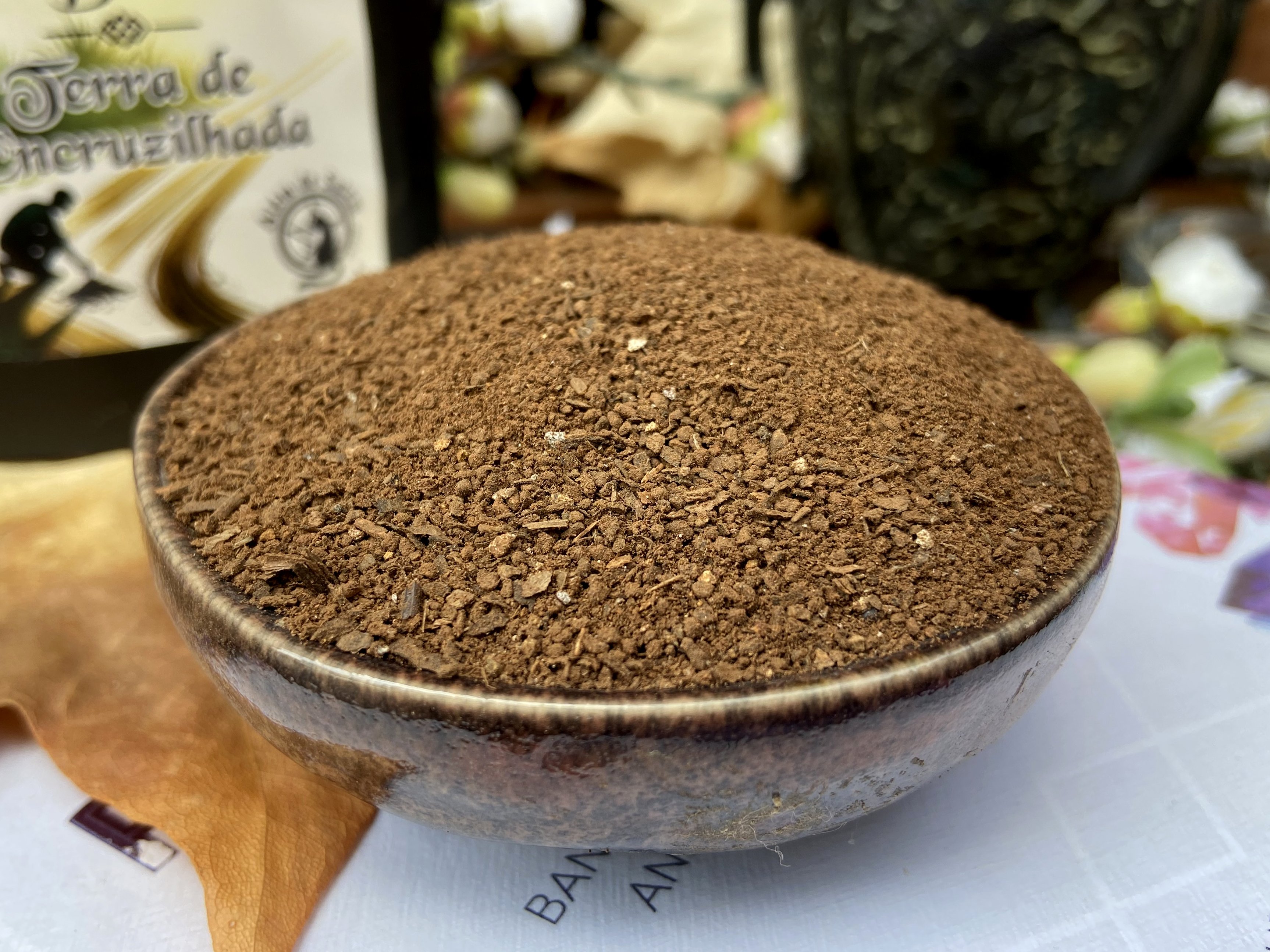 - Círculos Mágicos: Espalhe a terra em círculo ao redor do seu espaço sagrado, altar, ou em torno de feitiços de velas, para estabelecer limites mágicos e criar um campo protetor durante os rituais, ajudando a manter as energias focadas e purificadas para o trabalho espiritual..