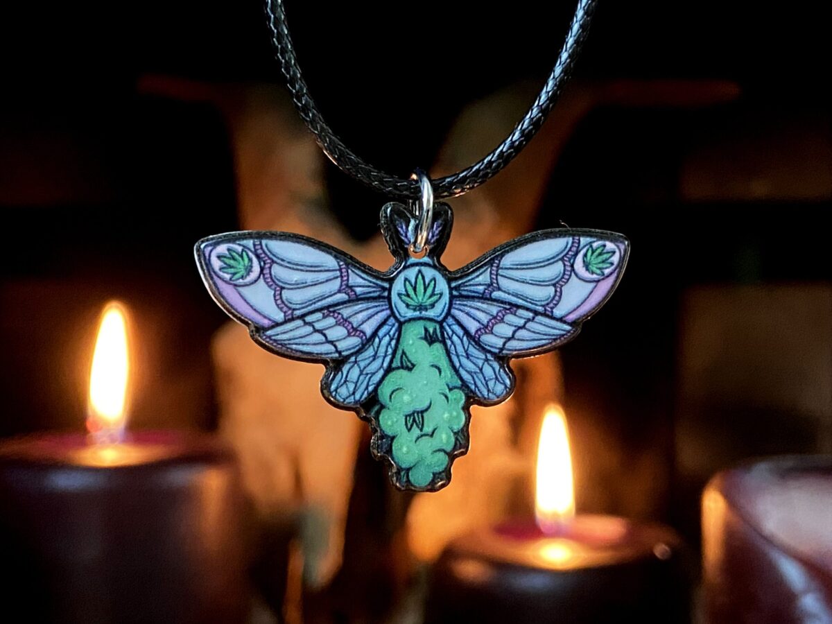 - 01 unidade de Acrylic Pingente Psychedelic Moth com Cordão