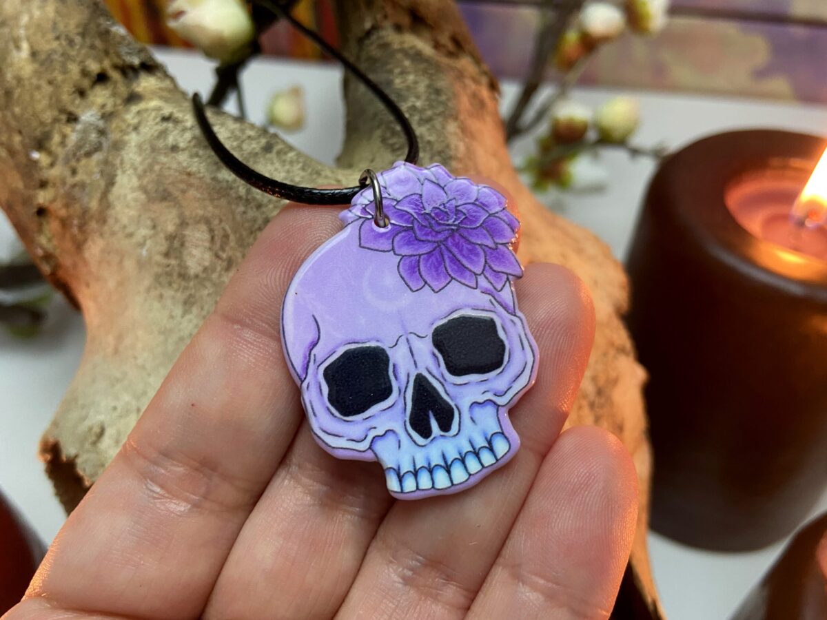 - 01 unidade de Acrylic Pingente Purple Skull com Cordão