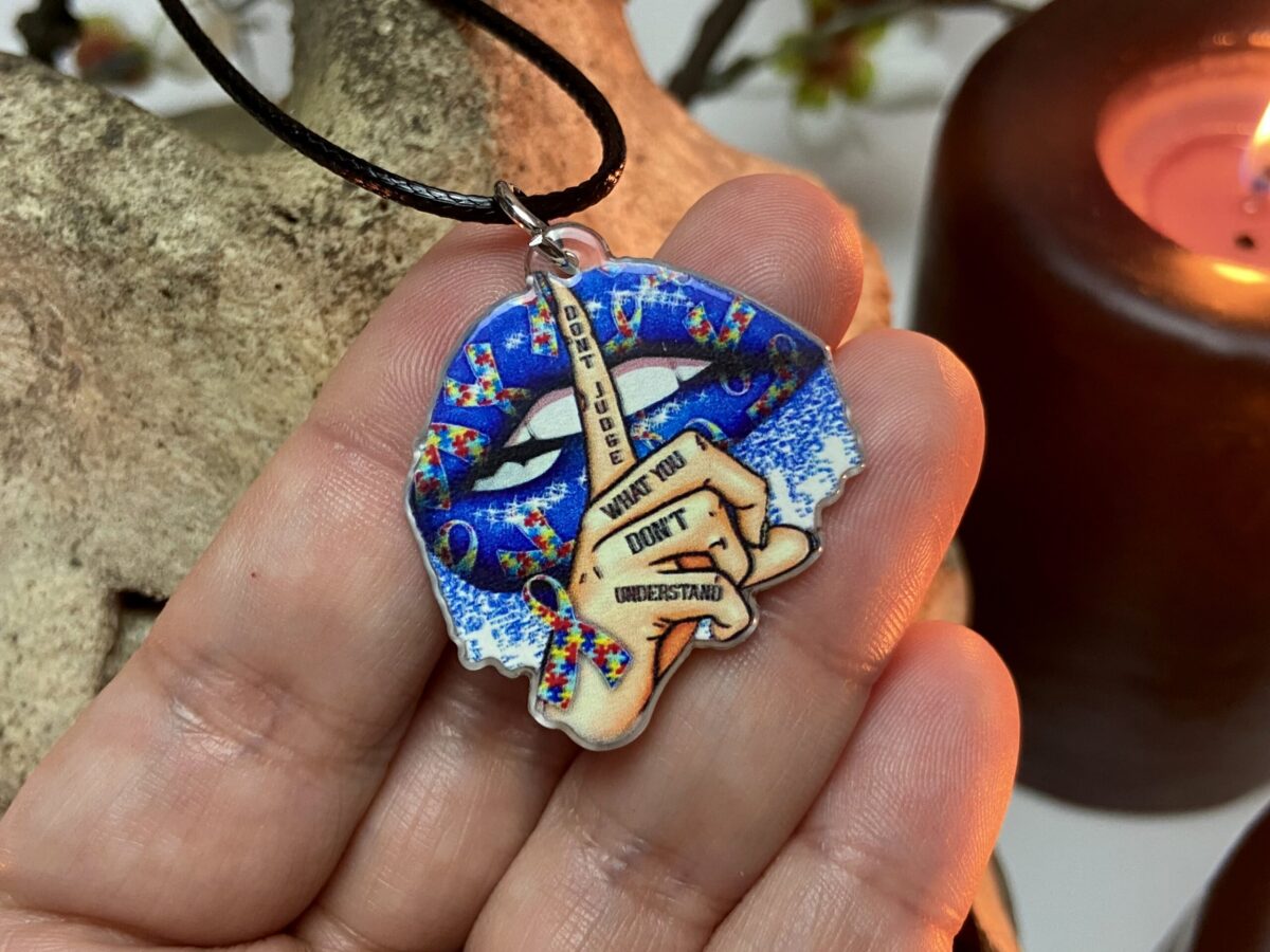 Lindíssimo pingente em resina acrílica, double side com cordão sintético encerado.