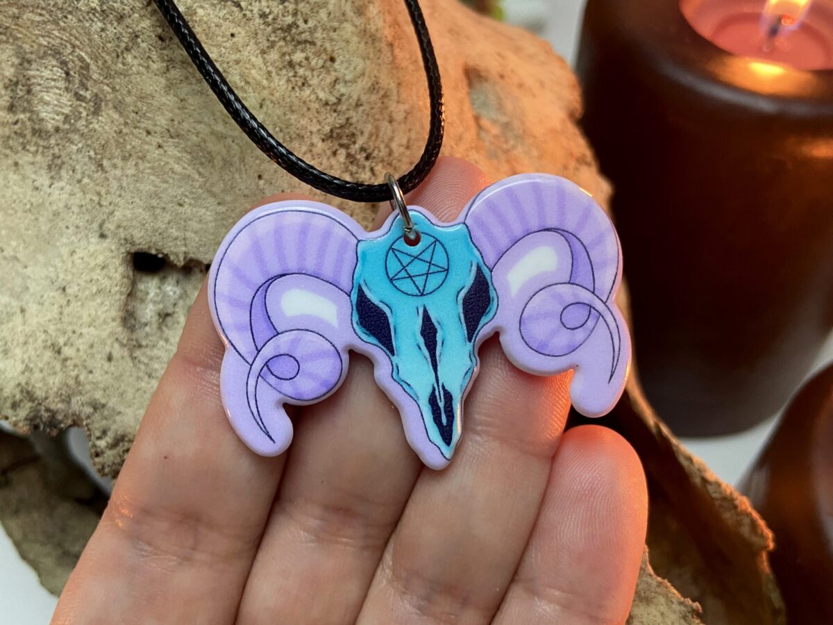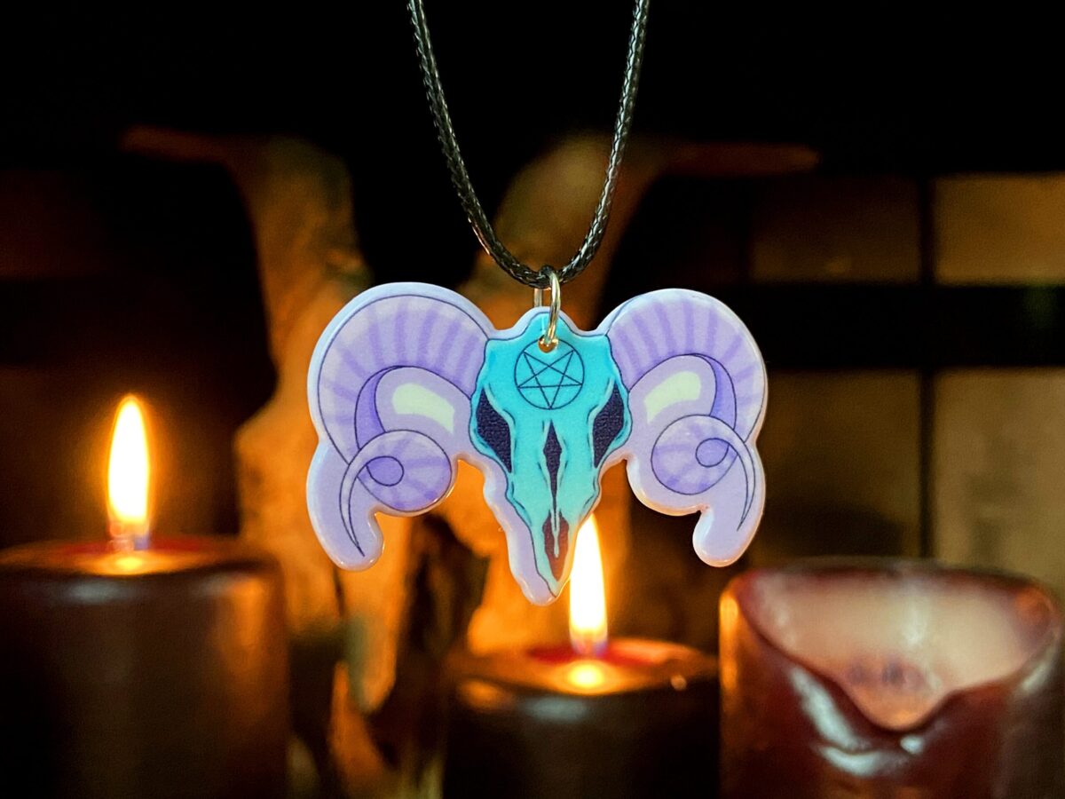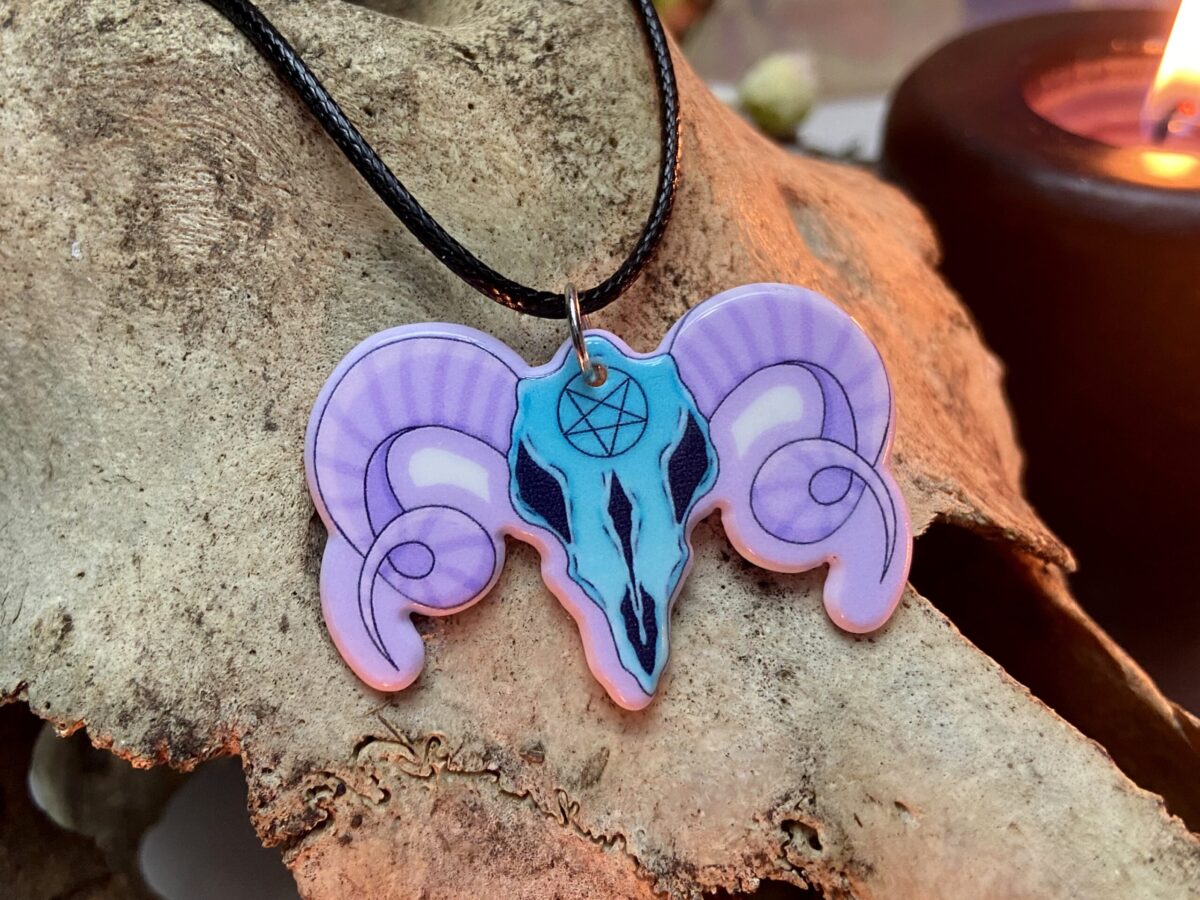 Acrylic Pingente Skull Pentagram com Cordão