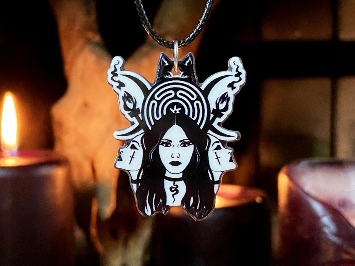 Acrylic Pingente Triple Goddess com Cordão