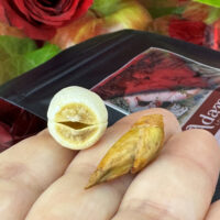 A peça chamada Eva é uma semente proveniente da planta aquática Nymphaea, conhecida como lírio-d’água egípcio. Esta planta possui forte presença simbólica em tradições antigas do Egito, associada à fertilidade, beleza, renascimento e energia feminina.