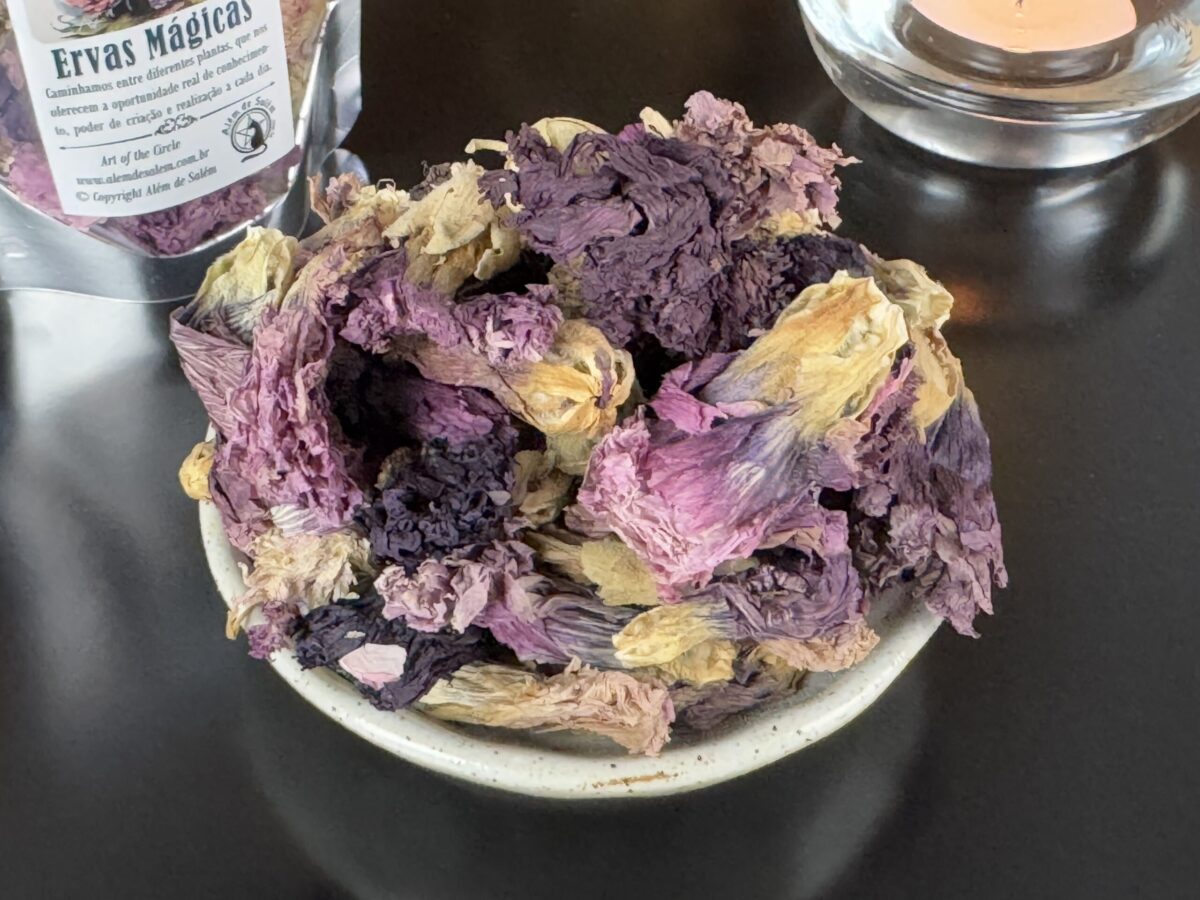 - Comunicação com Ancestrais e Espíritos: A Althaea é frequentemente usada em rituais de conexão espiritual. Suas propriedades facilitam a comunicação com ancestrais, mentores espirituais e guias. Ela é ideal para ser utilizada em momentos de introspecção, em práticas xamânicas ou como parte de um altar dedicado à ancestralidade