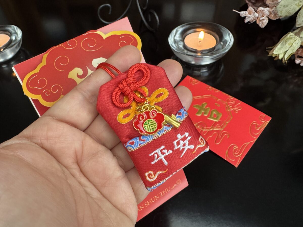 Na tradição popular chinesa, esse tipo de amuleto é utilizado para afastar perigos, atrair boa sorte e manter a harmonia espiritual, especialmente em viagens ou momentos de transição. O pingente dourado com o ideograma 福 (“fortuna”) intensifica os votos de bênçãos.
