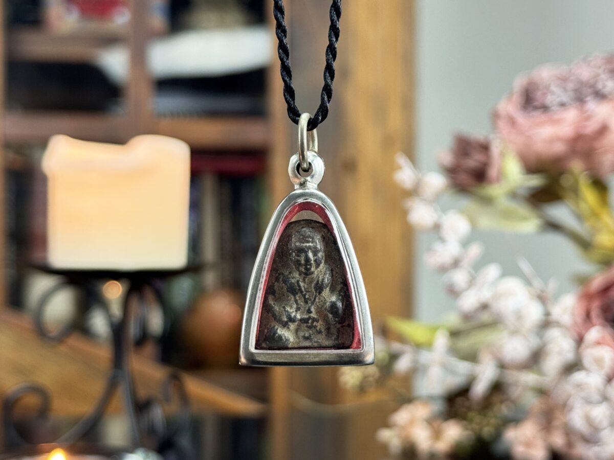 Transmutação Cármica: Ao conter substâncias rituais como pó de relíquias e cinzas monásticas, o amuleto atua como símbolo de impermanência e purificação. Ele carrega a memória dos que vieram antes e transborda bênçãos ancestrais.