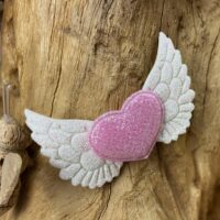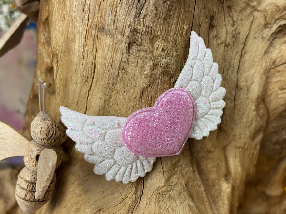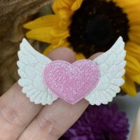 Aplique coração de tecido acolchoado, com asas e glitter para trabalhos de Magia com Poppets e Mojos.