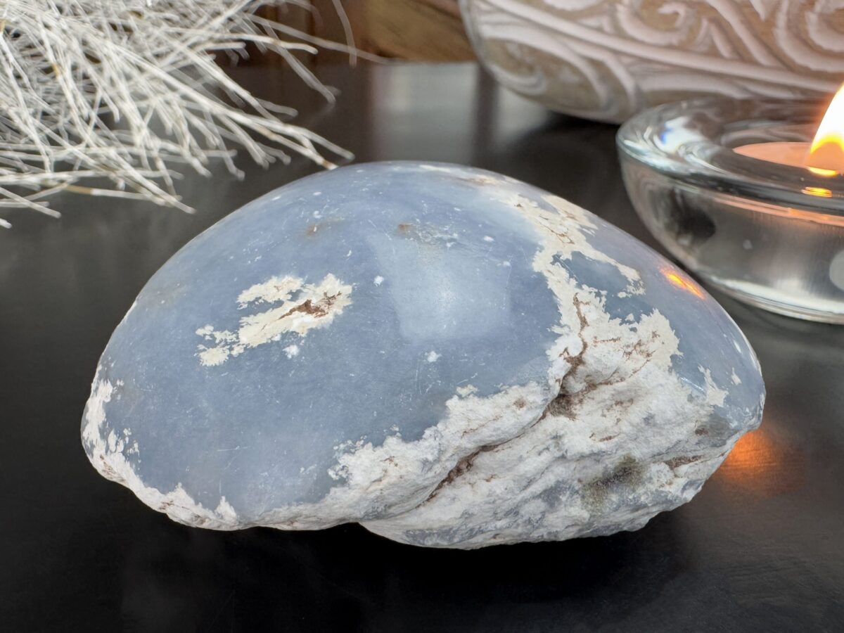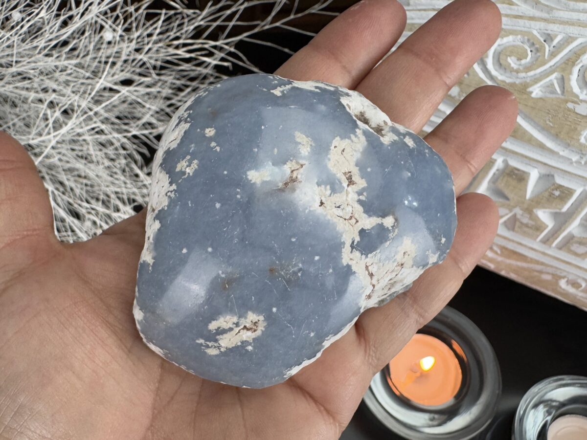 A pedra Angelita, também conhecida como anhidrita azul, é uma pedra preciosa de cor azul suave, encontrada no Peru. Seu nome deriva da palavra “anjo”, refletindo sua forte conexão com a espiritualidade, a calma e o equilíbrio energético.