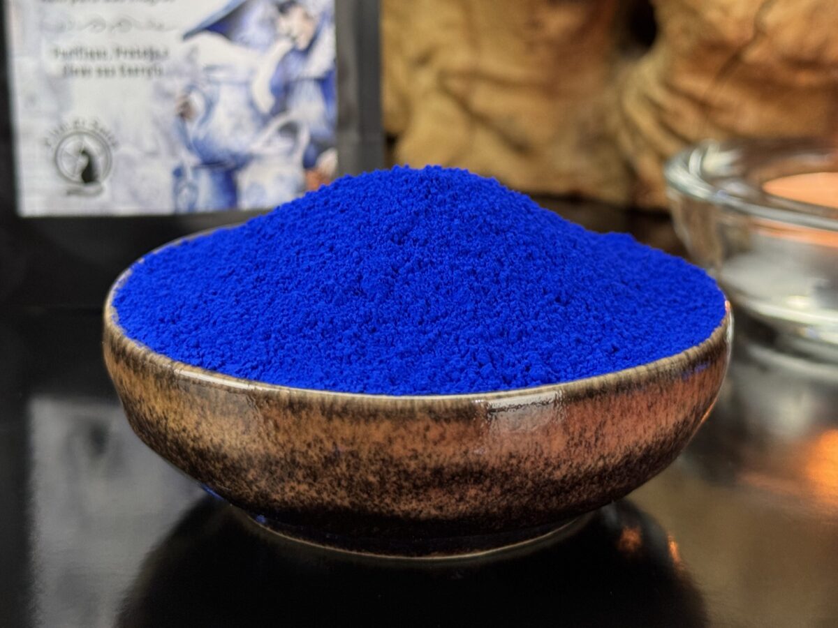 ✔ Purificação de Objetos e Amuletos – Cristais, talismãs e ferramentas mágicas podem ser submersos em uma solução com anil para restaurar suas propriedades espirituais.