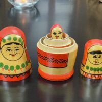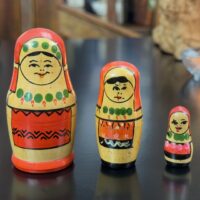 Descubra a beleza e a tradição da cultura russa com estas Antigas Matrioskas, peças autênticas que preservam o legado artesanal do país. As matrioskas, também conhecidas como bonecas russas, são mundialmente reconhecidas como símbolos de união familiar, fertilidade e continuidade. Este conjunto é composto por duas bonecas pintadas à mão, carregando o charme rústico de um trabalho artesanal genuíno.