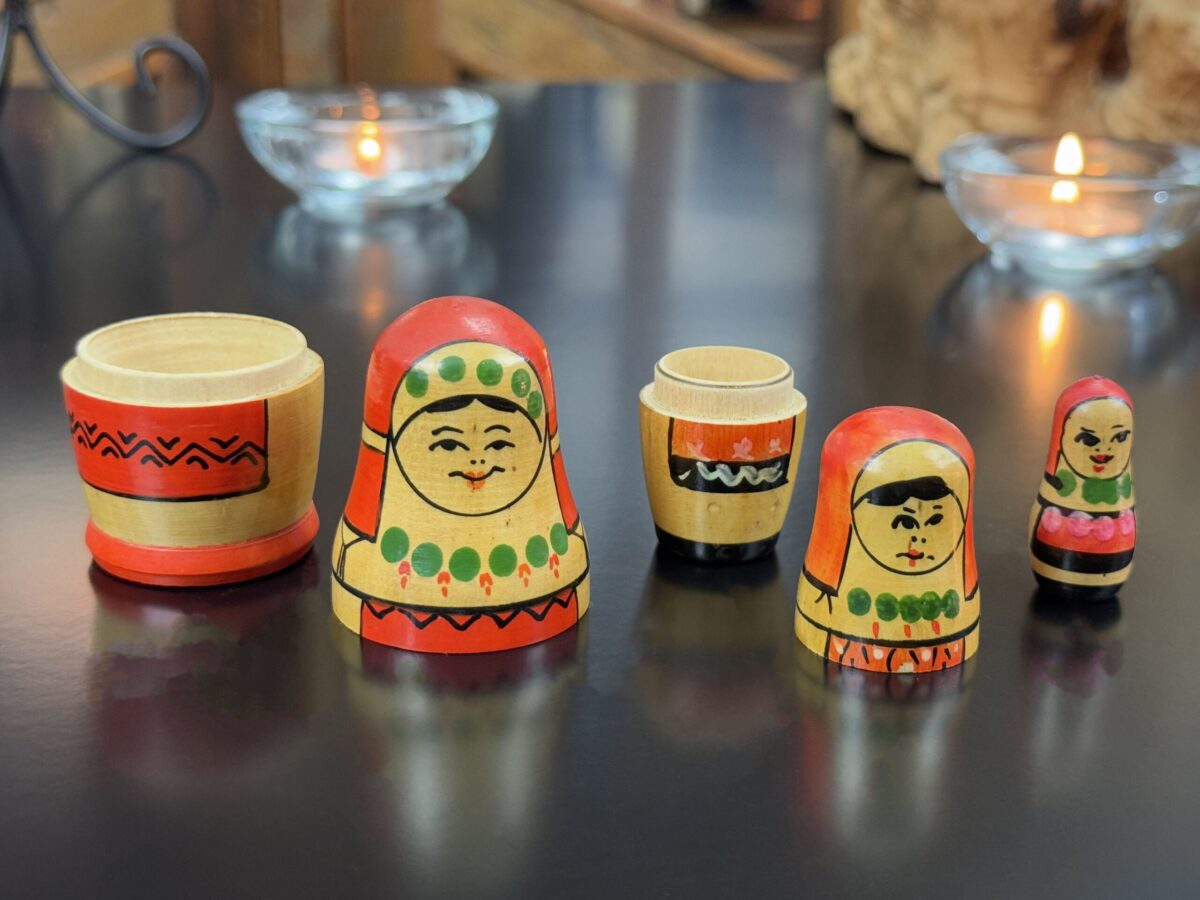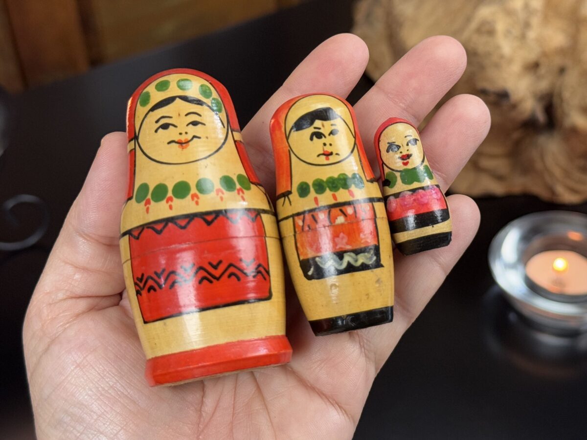 ✔ Artesanato Russo: Produzidas em madeira, com cabeças e corpos delicadamente pintados à mão, estas matrioskas representam a riqueza cultural russa.