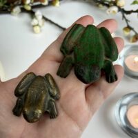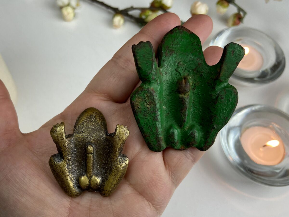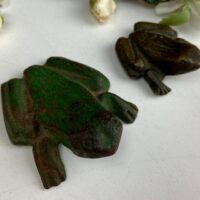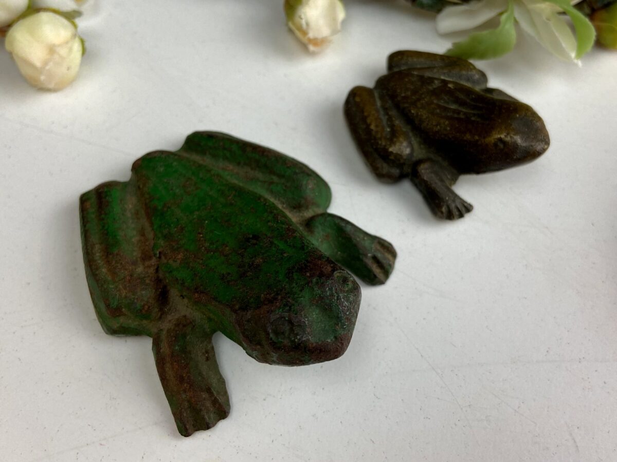 Duas miniaturas antigas em bronze maciço, patinado que são verdadeiras obras de arte. Representando a figura do sapo com órgão genital masculino, estas peças únicas são raras e certamente vão impressionar qualquer praticante de Magia amante de antiguidades ou colecionador de itens exóticos.