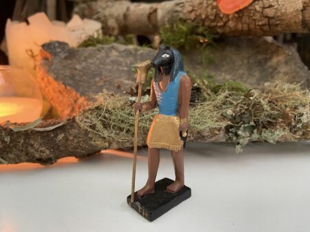 Anubis é o antigo deus egípcio dos mortos, embalsamamento e do submundo. Protetor de sepulturas, cemitérios e vida após a morte. Guardião da balança no salão das verdades.