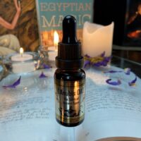 Óleo egípcio de unção que proporciona habilidades de concentração, determinação e poder ao praticante em rituais. Produto consagrado em ritual, pronto para uso.
