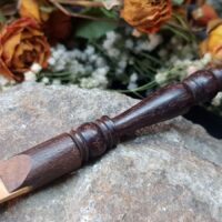 Delicado Athame Japonês feito em madeira torneada de perfeito acabamento. Para quem quer em suas práticas uma peça diferenciada com a energia da madeira de um objeto com mais de 60 anos.