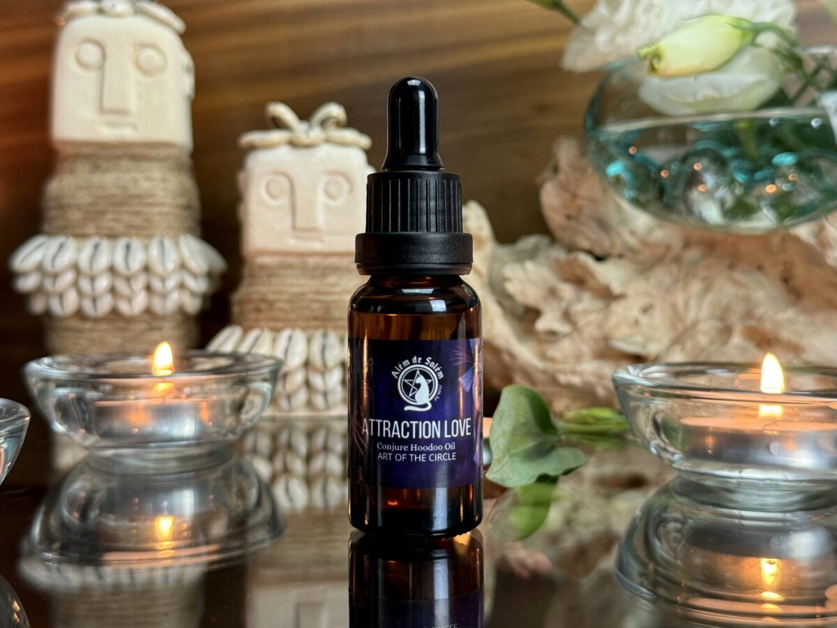 Os óleos Além de Salém são legítimos óleos mágicos, elaborados a partir de ingredientes 100% naturais conforme tradições antigas. Cada receita é respeitada em seu tempo de repouso e, depois, enriquecida com ervas, óleos essenciais e resinas que potencializam suas propriedades. Todo o processo é conduzido ritualisticamente, tornando cada vidro uma matriz potente.