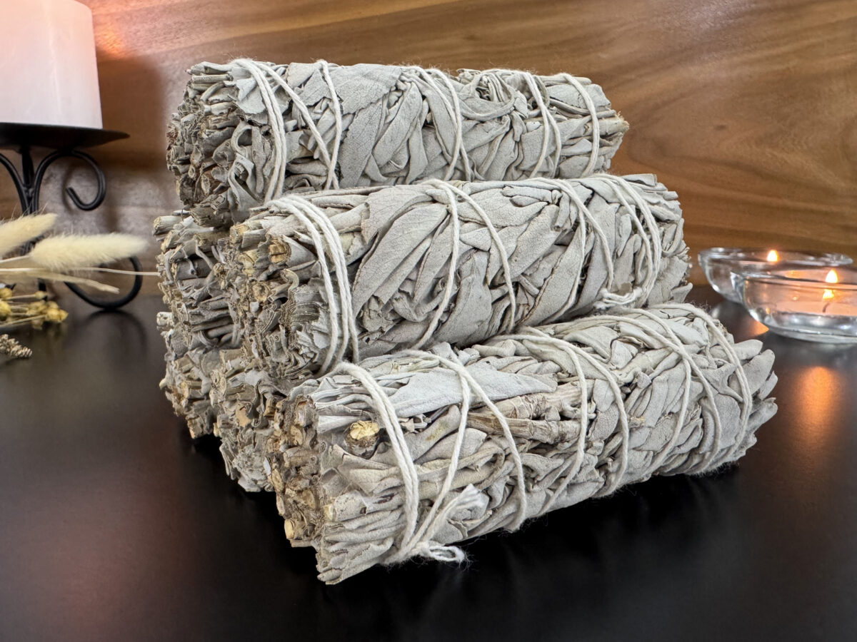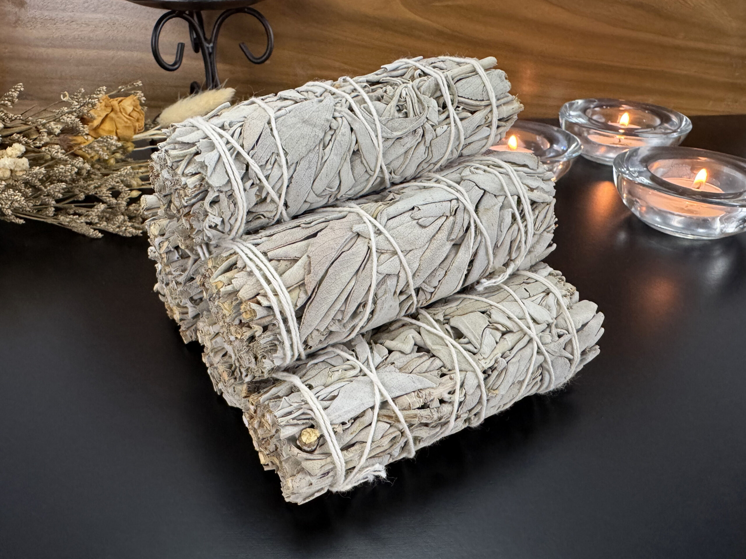 Sálvia branca (Sálvia Apiana) de qualidade superior da Califórnia. A cerimônia de queimar sálvia branca existe há séculos para limpar, purificar, conectar-se ao reino espiritual e aprimorar a intuição.