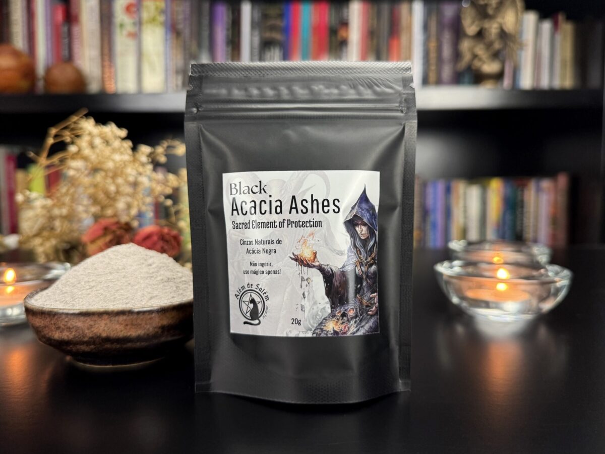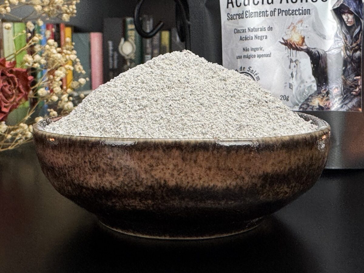 As Cinzas de Acácia Negra são obtidas através da queima cerimonial da madeira sagrada da Acacia nilotica nigra, concentrando a força do fogo ancestral em partículas finíssimas. Na Bruxaria Tradicional, essas cinzas são imprescindíveis para trabalhos de selamento energético, conexão com a Terra, firmamento ritual e proteção contínua.