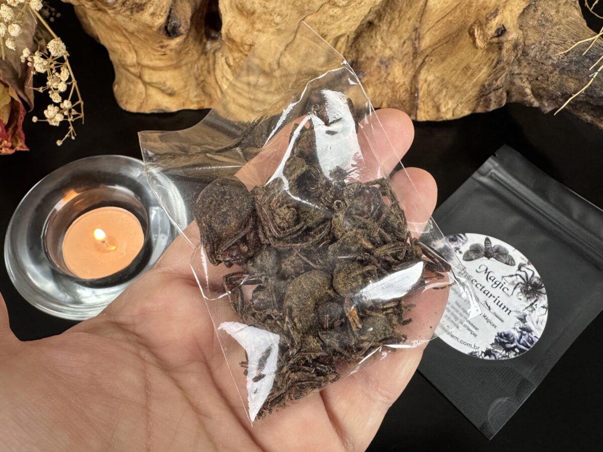 - 1 pacote contendo 5 gramas (conforme imagem) de aranhas negras higienizadas e desidratadas para uso ritual
