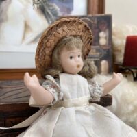 Boneca antiga com corpo inteiro em porcelana inglesa, articulada em excelente estado. Uma peça magnífica para ser utilizada em conexões do passado, spirit dolls e muito mais.