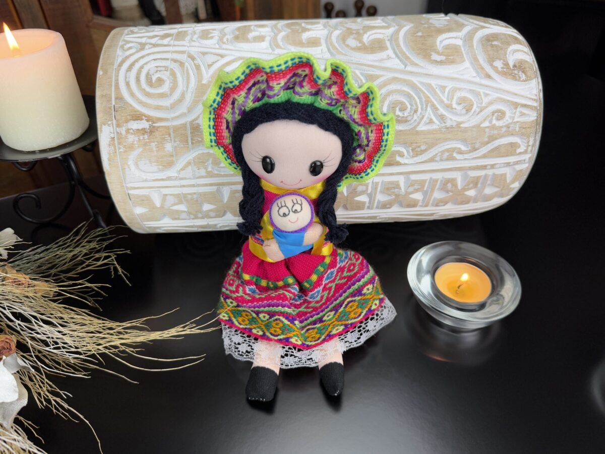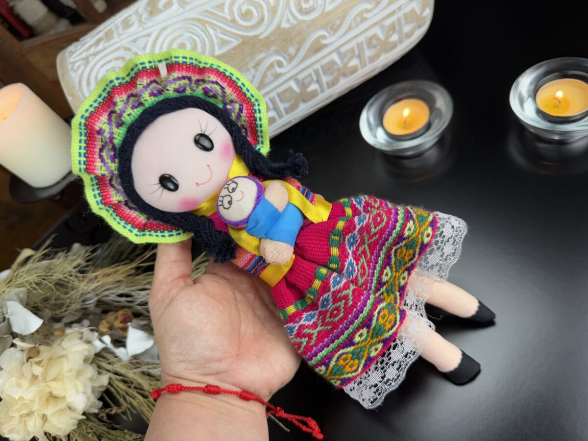 Traga para sua vida a energia maternal e a conexão ancestral com esta Boneca Cholita Cusqueña, feita à mão e representando a tradicional figura andina com um bebê nos braços. Esta peça simboliza amor incondicional, proteção e fertilidade, sendo perfeita para altares espirituais ou decoração com significado especial.