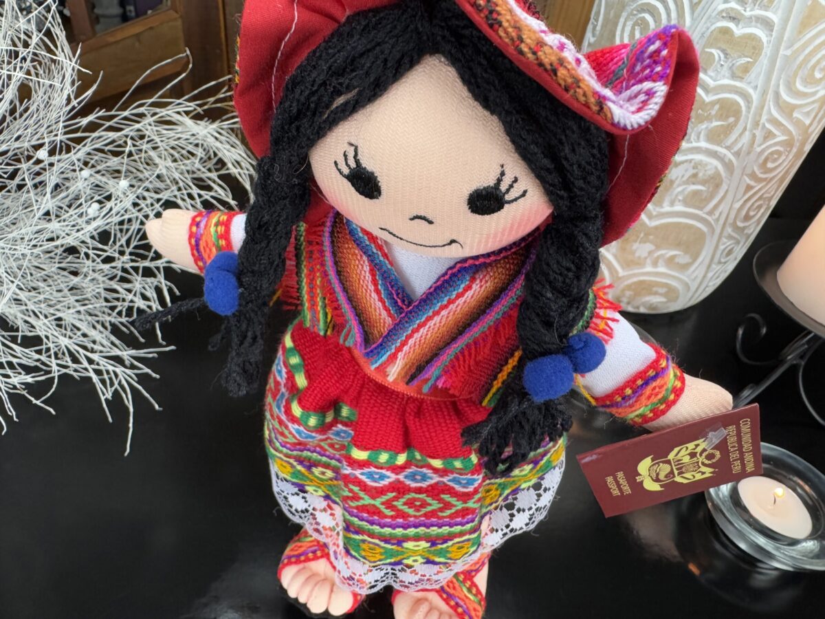 Esta boneca representa as mulheres andinas, suas histórias e sua conexão com a Pachamama (Mãe Terra). Vestida com trajes tradicionais feitos de tecidos inspirados nos mantos e ponchos usados nos Andes, ela carrega a essência da cultura peruana. Cada detalhe, como o chapéu típico e as cores vivas, simboliza a união da tradição com a arte, preservada por gerações de artesãos habilidosos.