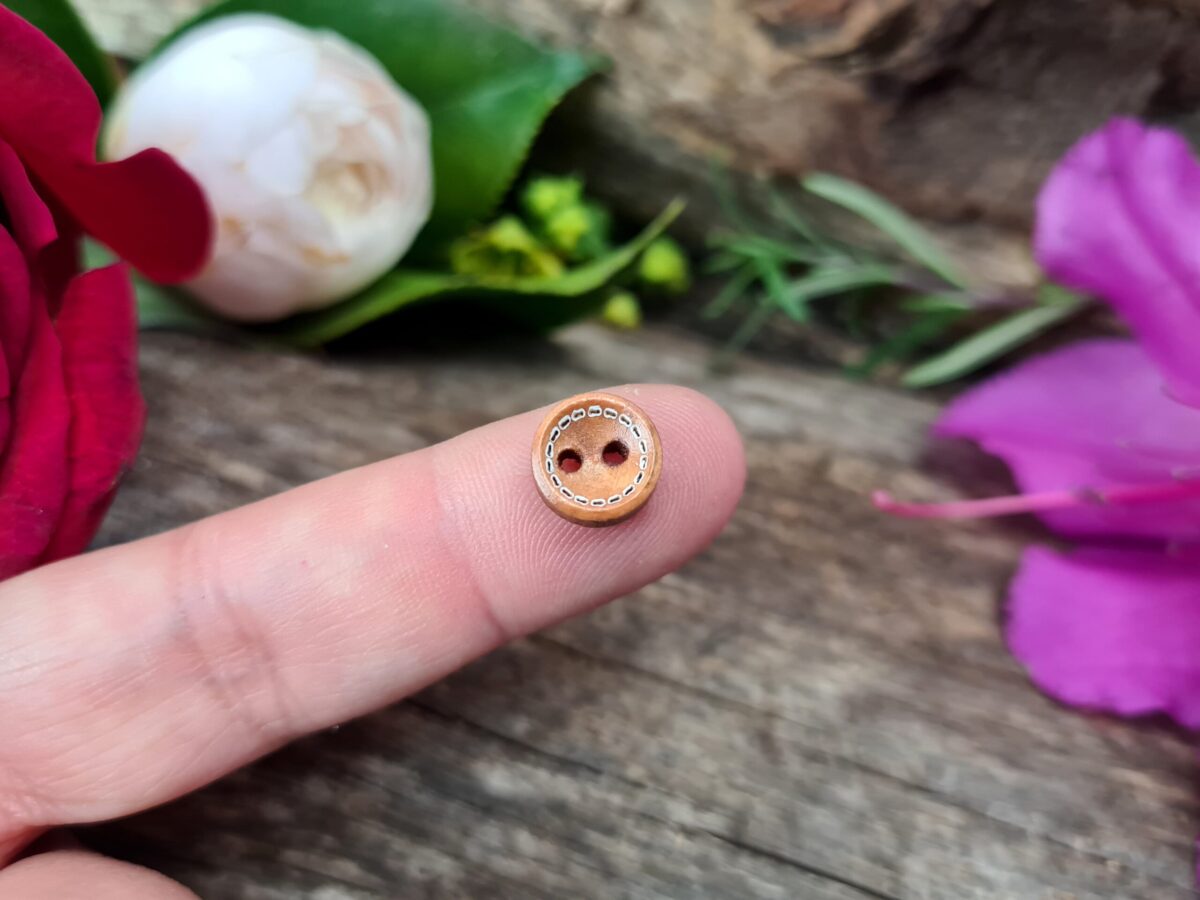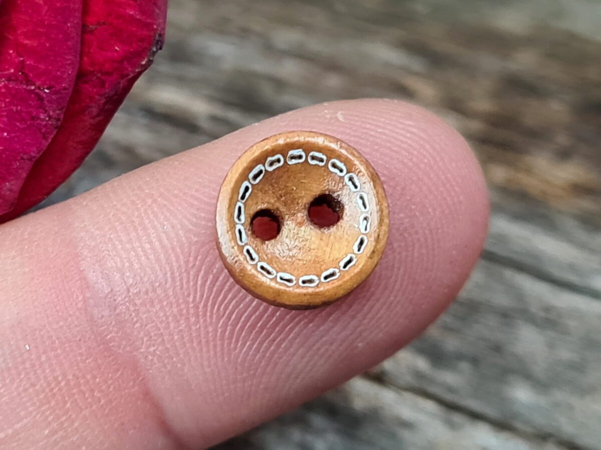 Botão de madeira redondo, para a confecção/decoração de Poppets e Charms mágicos.