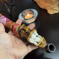 Descubra a essência da tradição e da espiritualidade andina com este belíssimo Cachimbo Xamânico Artesanal, uma peça única e cheia de simbolismo, feita à mão no Peru. Este cachimbo combina materiais naturais e elementos culturais que o tornam uma verdadeira obra de arte.