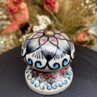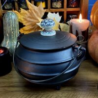 Lindíssimo caldeirão de ferro fundido, extremamente resistente para trabalhos diversos com Magia/Fogo/Água etc. Seu puxador em cerâmica pintada à mão deixa este instrumento delicado, sofisticado e diferenciado.