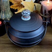 Caldeirão da Bruxa – Instrumento caldeirão – Caldeirão bruxaria – Caldeirão Magia – Caldeirão de ferro 2 litros com puxador em cerâmica artesanal