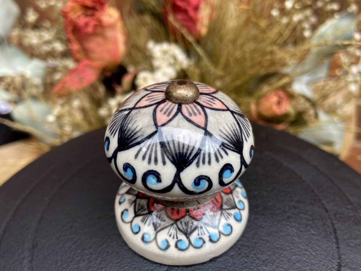 Lindíssimo caldeirão de ferro fundido, extremamente resistente para trabalhos diversos com Magia/Fogo/Água etc. Seu puxador em cerâmica pintada à mão deixa este instrumento delicado, sofisticado e diferenciado.