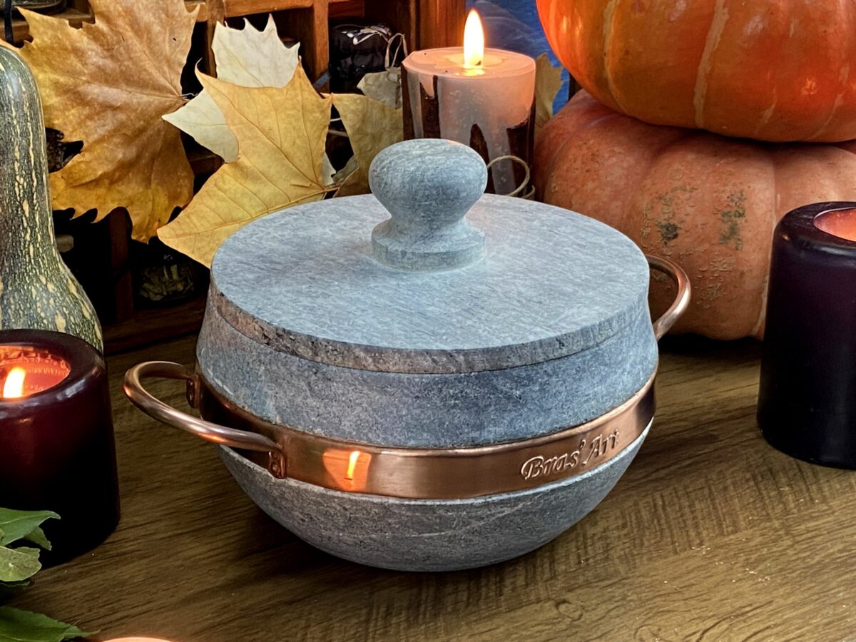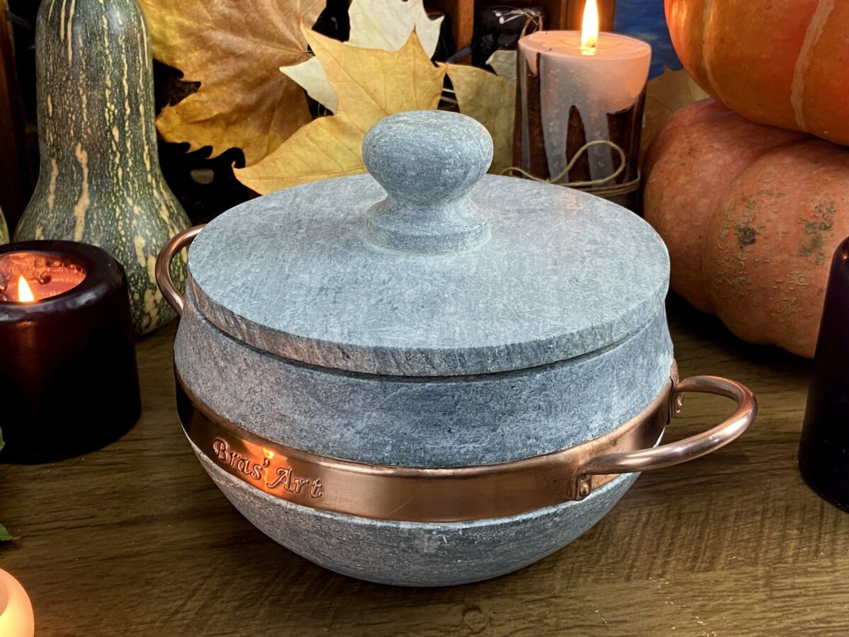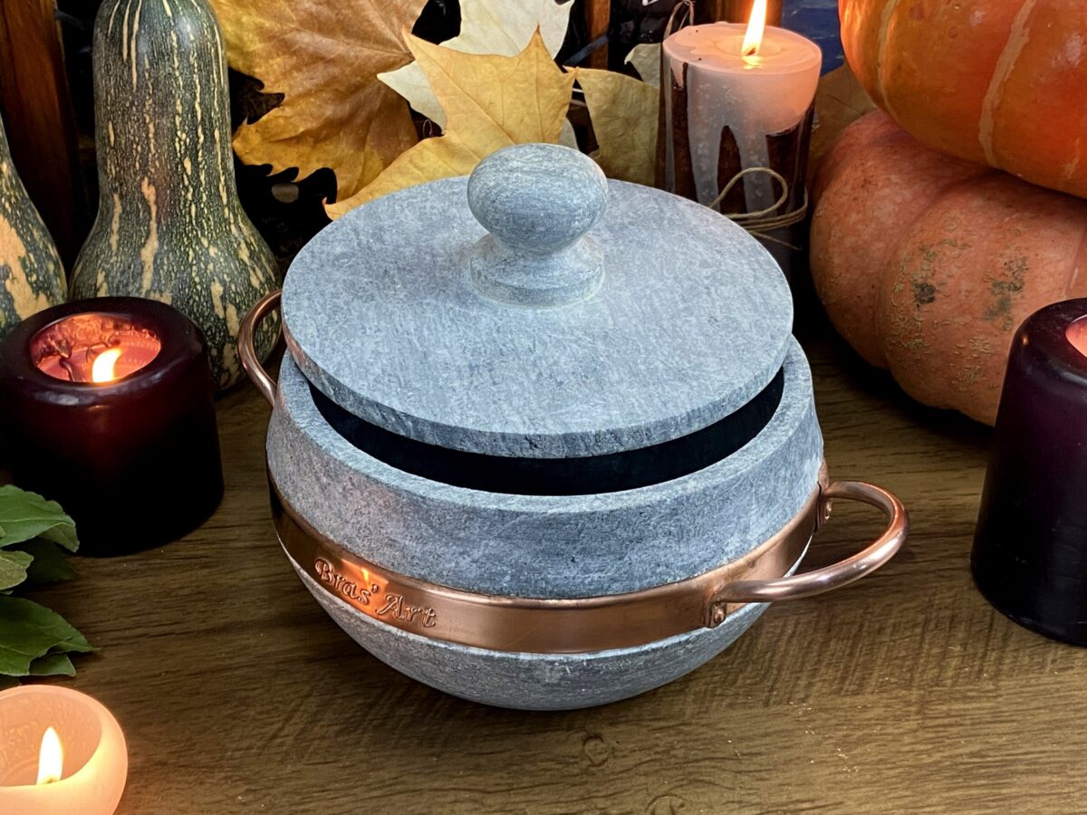 Caldeirão da Bruxa – Instrumento caldeirão – Caldeirão bruxaria – Caldeirão Magia – Caldeirão de Pedra e Cobre 1.5 L com Tampa