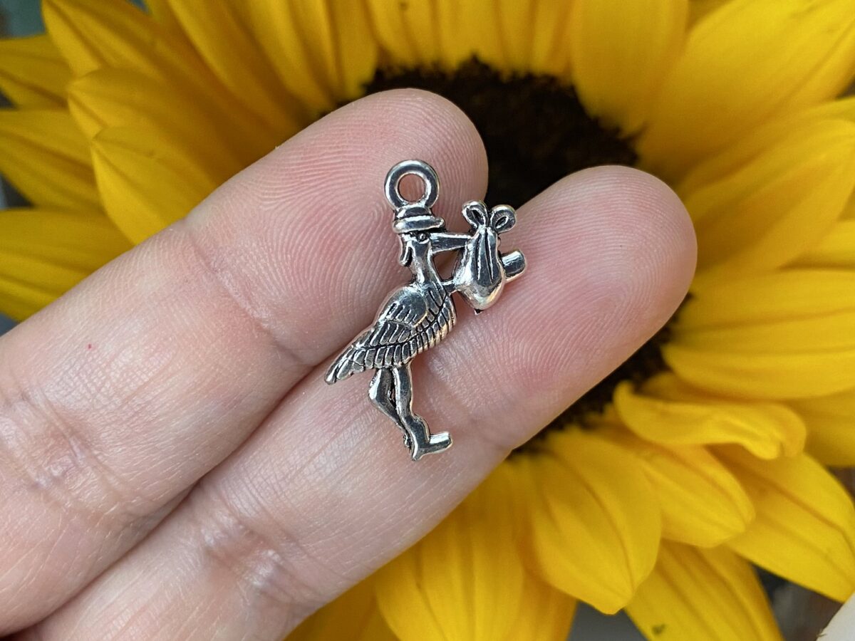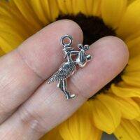 Pendant representando cegonha em liga metálica para trabalhos com amuletos e poppets.
