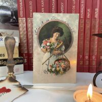 Cartão Dama Floral Azul 1916 – Cartão Circulado