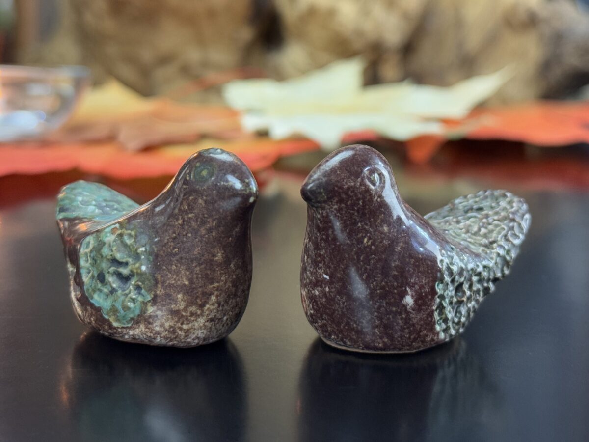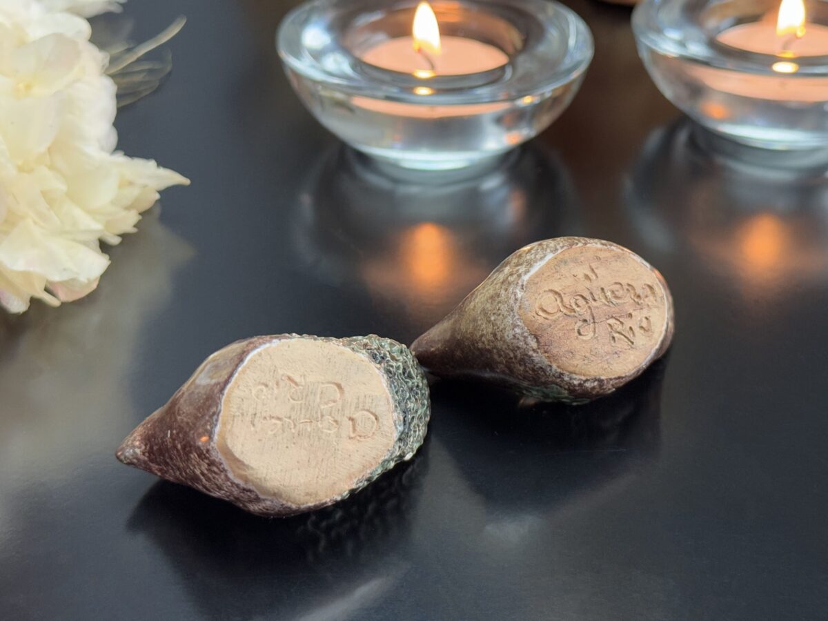 Casal de Pássaros de Cerâmica Assinado Agüero