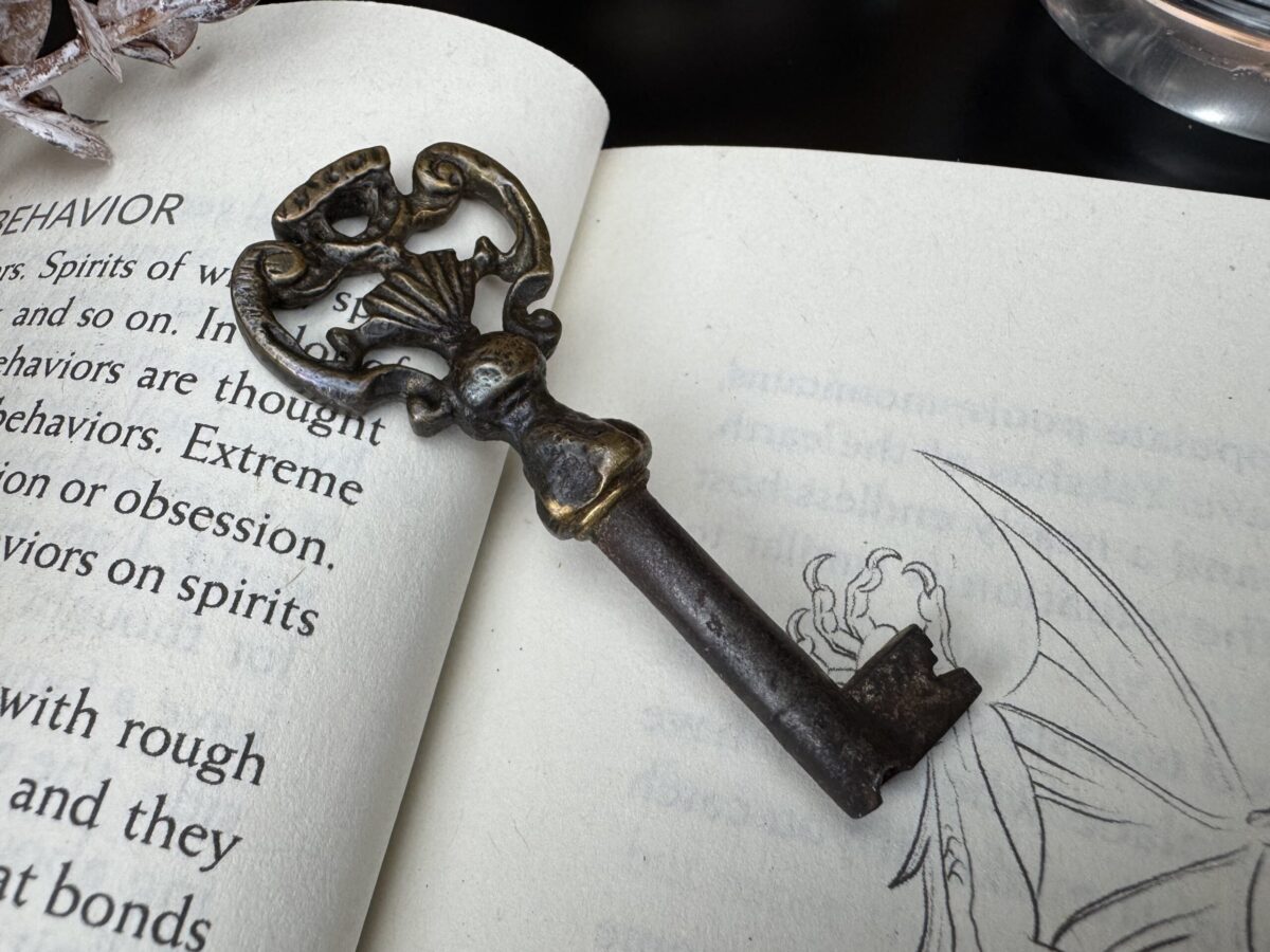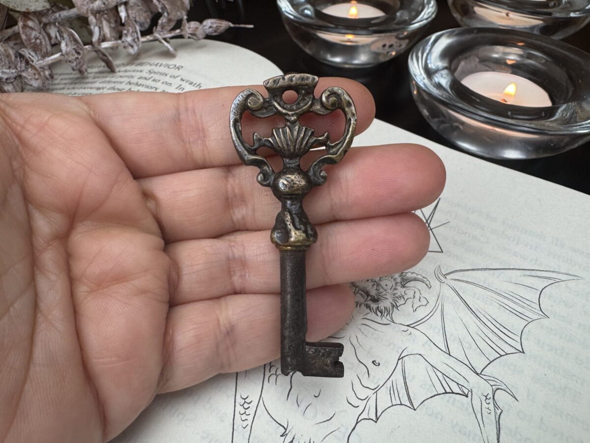 A tradição mágica sustenta que a Chave Mestra deve ser antiga, ostentando marcas naturais de uso e envelhecimento, carregando em sua essência a história das mãos que a tocaram e dos portais que abriu. Por conta disso, cada chave passa por uma leitura energética minuciosa, para desvendar a natureza da energia que carrega, compreender sua vibração única e direcioná-la adequadamente. Esse processo permite alinhar a chave ao seu propósito mágico, garantindo que se torne um instrumento poderoso e profundamente conectado ao praticante que a consagrará.