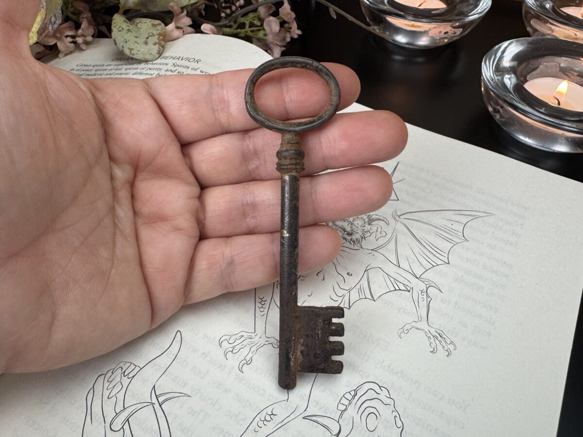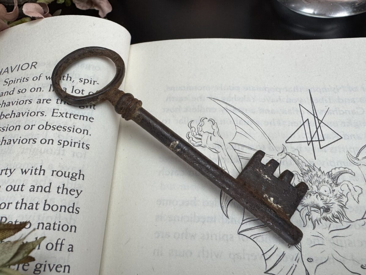 A tradição mágica sustenta que a Chave Mestra deve ser antiga, ostentando marcas naturais de uso e envelhecimento, carregando em sua essência a história das mãos que a tocaram e dos portais que abriu. Por conta disso, cada chave passa por uma leitura energética minuciosa, para desvendar a natureza da energia que carrega, compreender sua vibração única e direcioná-la adequadamente. Esse processo permite alinhar a chave ao seu propósito mágico, garantindo que se torne um instrumento poderoso e profundamente conectado ao praticante que a consagrará.