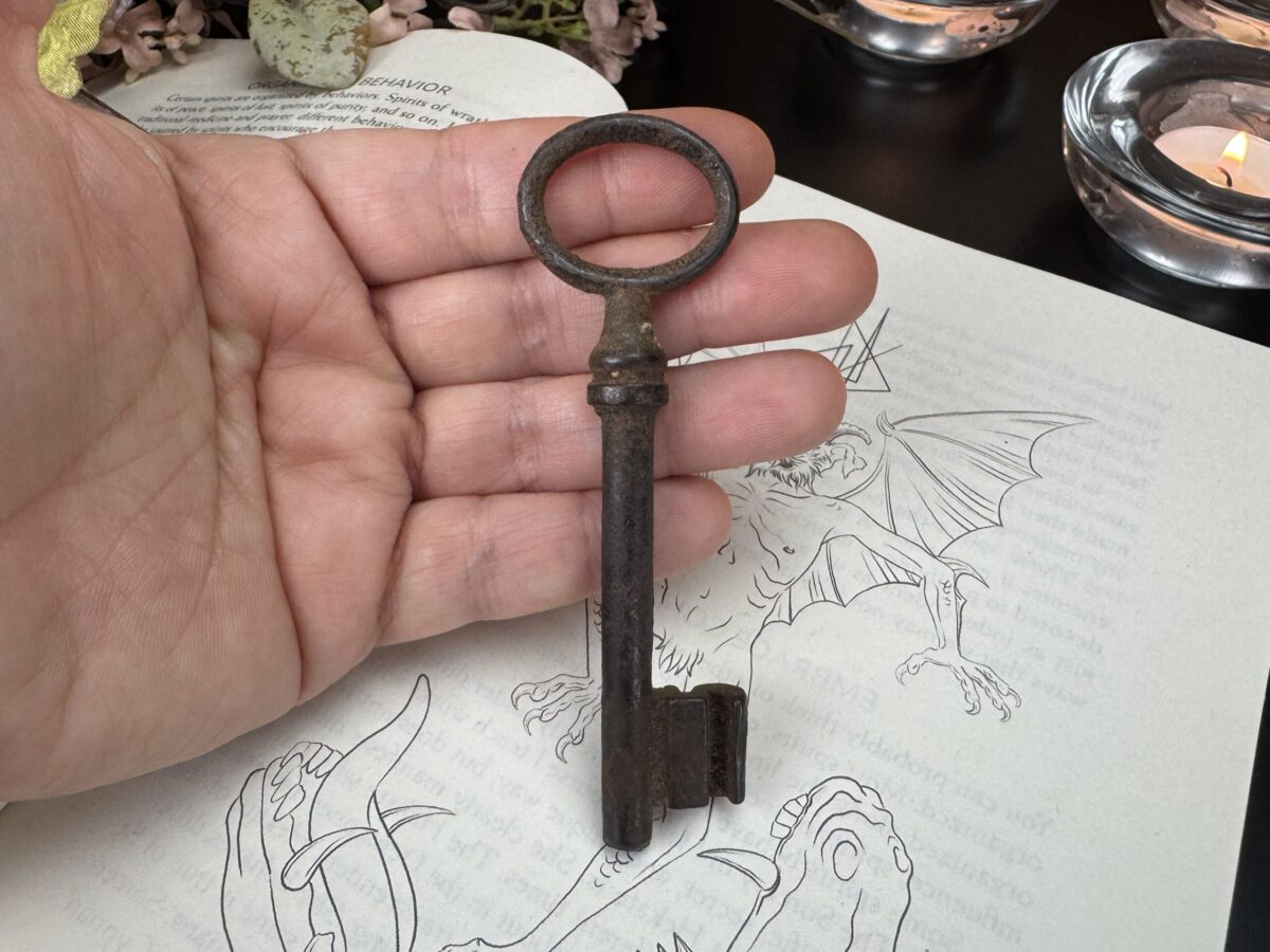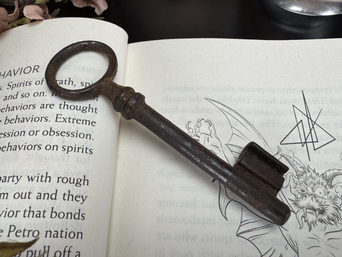 A tradição mágica sustenta que a Chave Mestra deve ser antiga, ostentando marcas naturais de uso e envelhecimento, carregando em sua essência a história das mãos que a tocaram e dos portais que abriu. Por conta disso, cada chave passa por uma leitura energética minuciosa, para desvendar a natureza da energia que carrega, compreender sua vibração única e direcioná-la adequadamente. Esse processo permite alinhar a chave ao seu propósito mágico, garantindo que se torne um instrumento poderoso e profundamente conectado ao praticante que a consagrará.