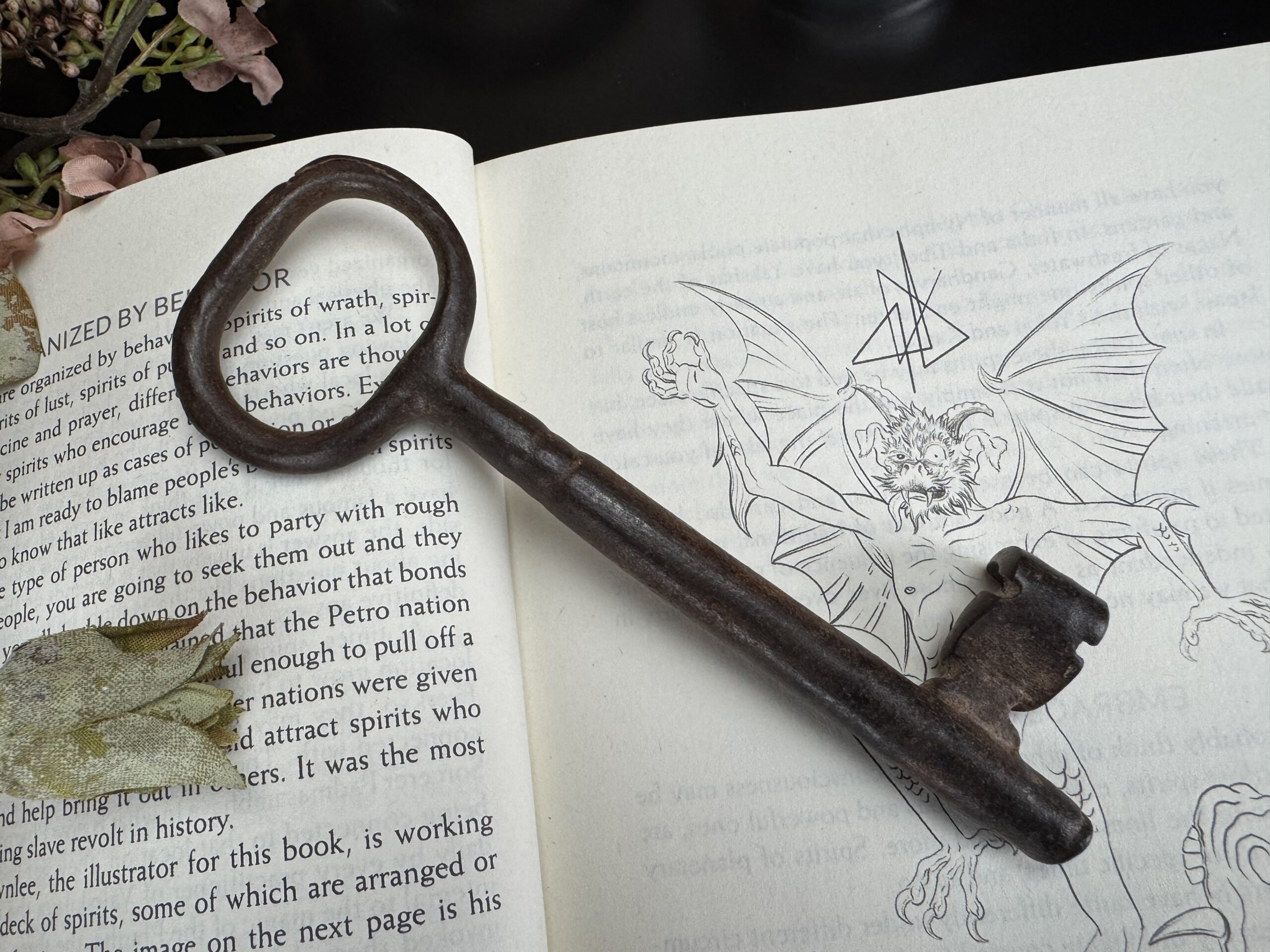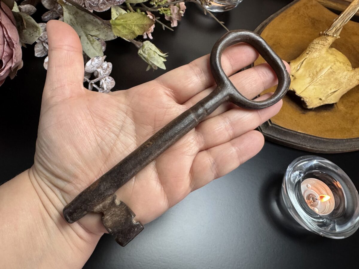 A tradição mágica sustenta que a Chave Mestra deve ser antiga, ostentando marcas naturais de uso e envelhecimento, carregando em sua essência a história das mãos que a tocaram e dos portais que abriu. Por conta disso, cada chave passa por uma leitura energética minuciosa, para desvendar a natureza da energia que carrega, compreender sua vibração única e direcioná-la adequadamente. Esse processo permite alinhar a chave ao seu propósito mágico, garantindo que se torne um instrumento poderoso e profundamente conectado ao praticante que a consagrará.