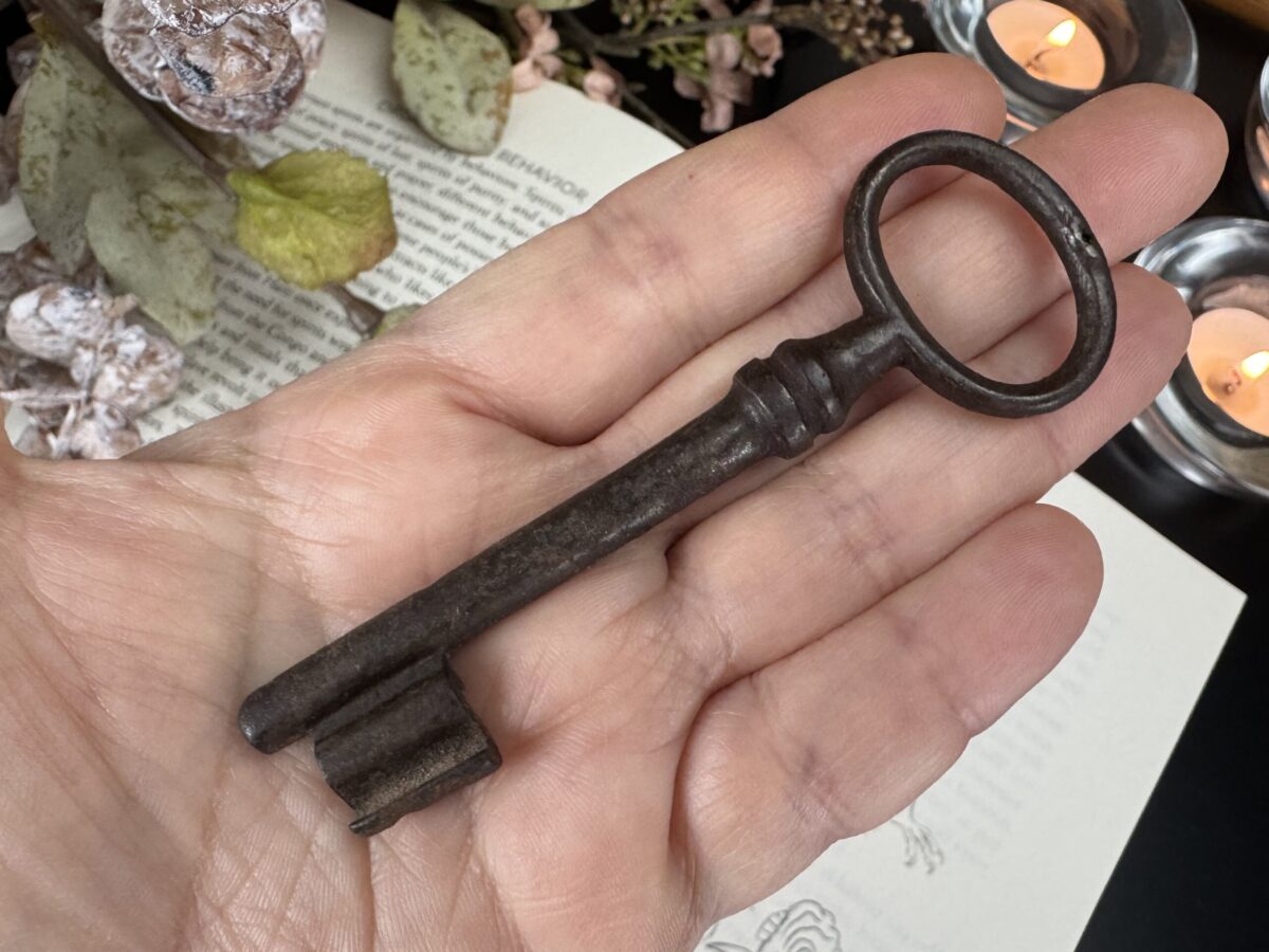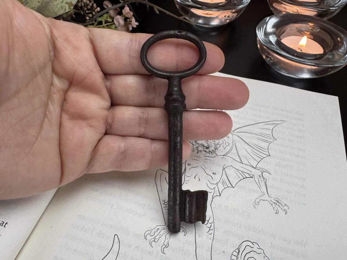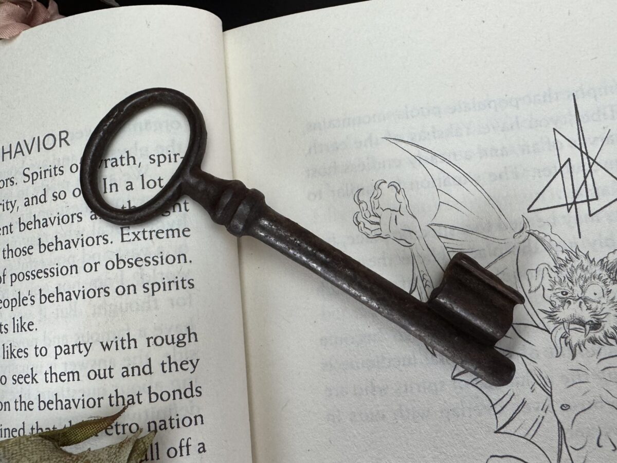 A tradição mágica sustenta que a Chave Mestra deve ser antiga, ostentando marcas naturais de uso e envelhecimento, carregando em sua essência a história das mãos que a tocaram e dos portais que abriu. Por conta disso, cada chave passa por uma leitura energética minuciosa, para desvendar a natureza da energia que carrega, compreender sua vibração única e direcioná-la adequadamente. Esse processo permite alinhar a chave ao seu propósito mágico, garantindo que se torne um instrumento poderoso e profundamente conectado ao praticante que a consagrará.