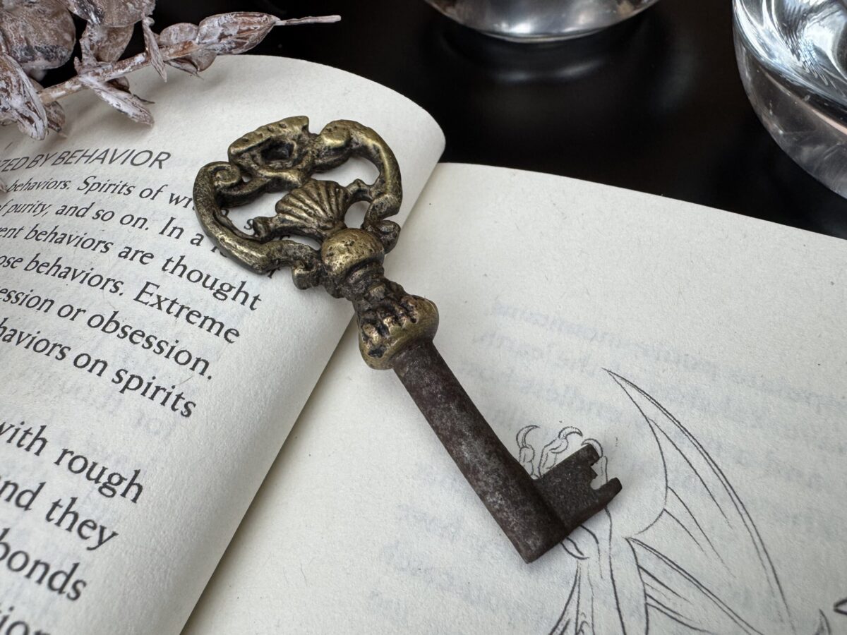 A tradição mágica sustenta que a Chave Mestra deve ser antiga, ostentando marcas naturais de uso e envelhecimento, carregando em sua essência a história das mãos que a tocaram e dos portais que abriu. Por conta disso, cada chave passa por uma leitura energética minuciosa, para desvendar a natureza da energia que carrega, compreender sua vibração única e direcioná-la adequadamente. Esse processo permite alinhar a chave ao seu propósito mágico, garantindo que se torne um instrumento poderoso e profundamente conectado ao praticante que a consagrará.