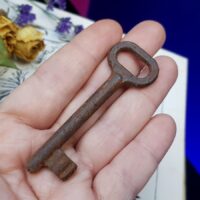 Antiga e com marcas naturais do tempo e de uso. De ferro, esta chave é sem dúvida uma peça carregada de história, e terá uma utilização muito especial nas mãos do praticante de Magia que sabe lidar com este tipo de instrumento.
