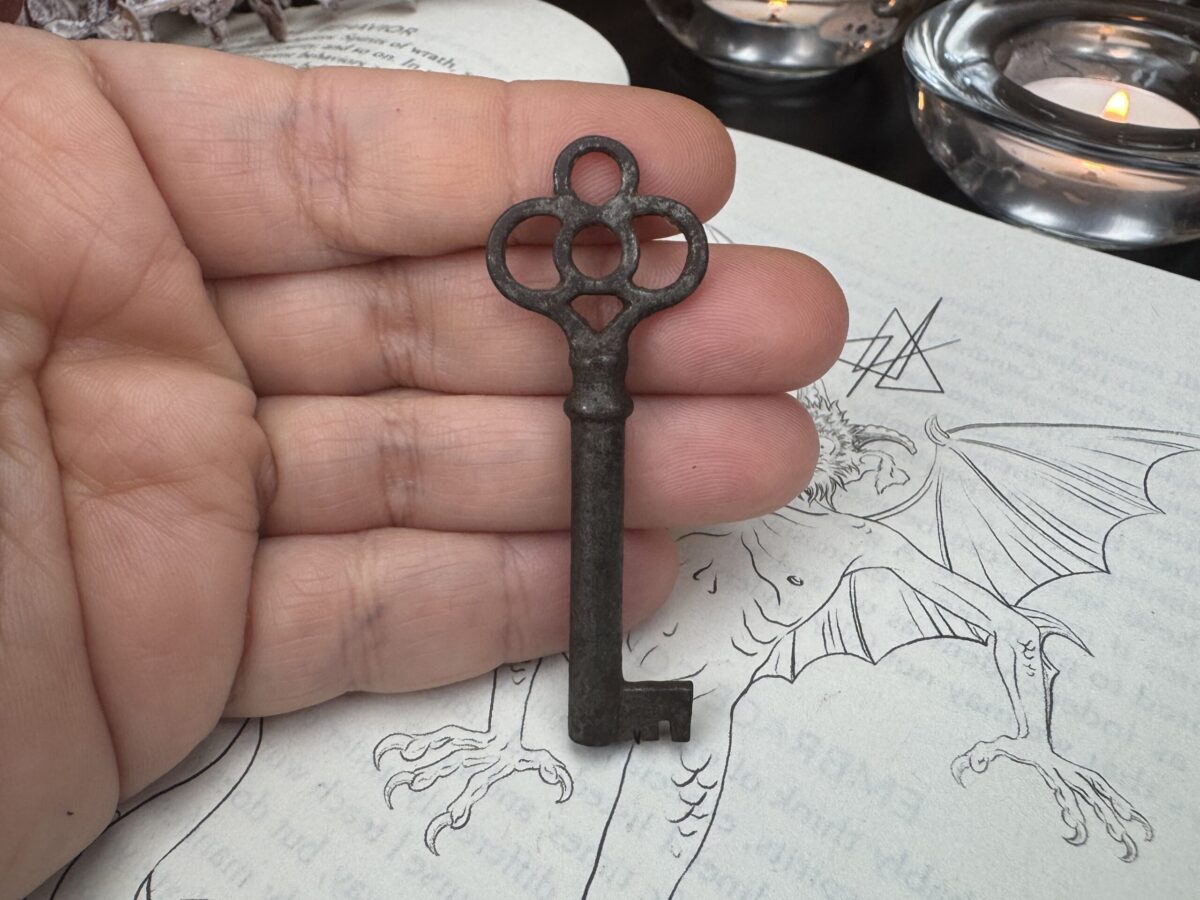 A tradição mágica sustenta que a Chave Mestra deve ser antiga, ostentando marcas naturais de uso e envelhecimento, carregando em sua essência a história das mãos que a tocaram e dos portais que abriu. Por conta disso, cada chave passa por uma leitura energética minuciosa, para desvendar a natureza da energia que carrega, compreender sua vibração única e direcioná-la adequadamente. Esse processo permite alinhar a chave ao seu propósito mágico, garantindo que se torne um instrumento poderoso e profundamente conectado ao praticante que a consagrará.