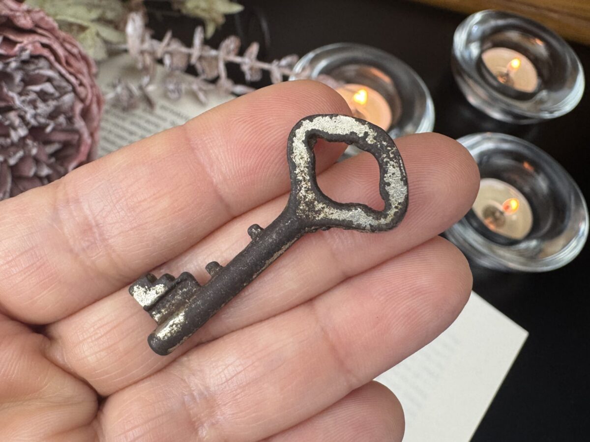 A tradição mágica sustenta que a Chave Mestra deve ser antiga, ostentando marcas naturais de uso e envelhecimento, carregando em sua essência a história das mãos que a tocaram e dos portais que abriu. Por conta disso, cada chave passa por uma leitura energética minuciosa, para desvendar a natureza da energia que carrega, compreender sua vibração única e direcioná-la adequadamente. Esse processo permite alinhar a chave ao seu propósito mágico, garantindo que se torne um instrumento poderoso e profundamente conectado ao praticante que a consagrará.