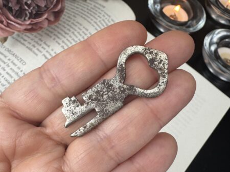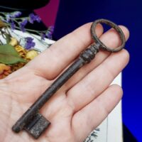 Antiga e com marcas naturais do tempo e de uso. De ferro, esta chave é sem dúvida uma peça carregada de história, e terá uma utilização muito especial nas mãos do praticante de Magia que sabe lidar com este tipo de instrumento.