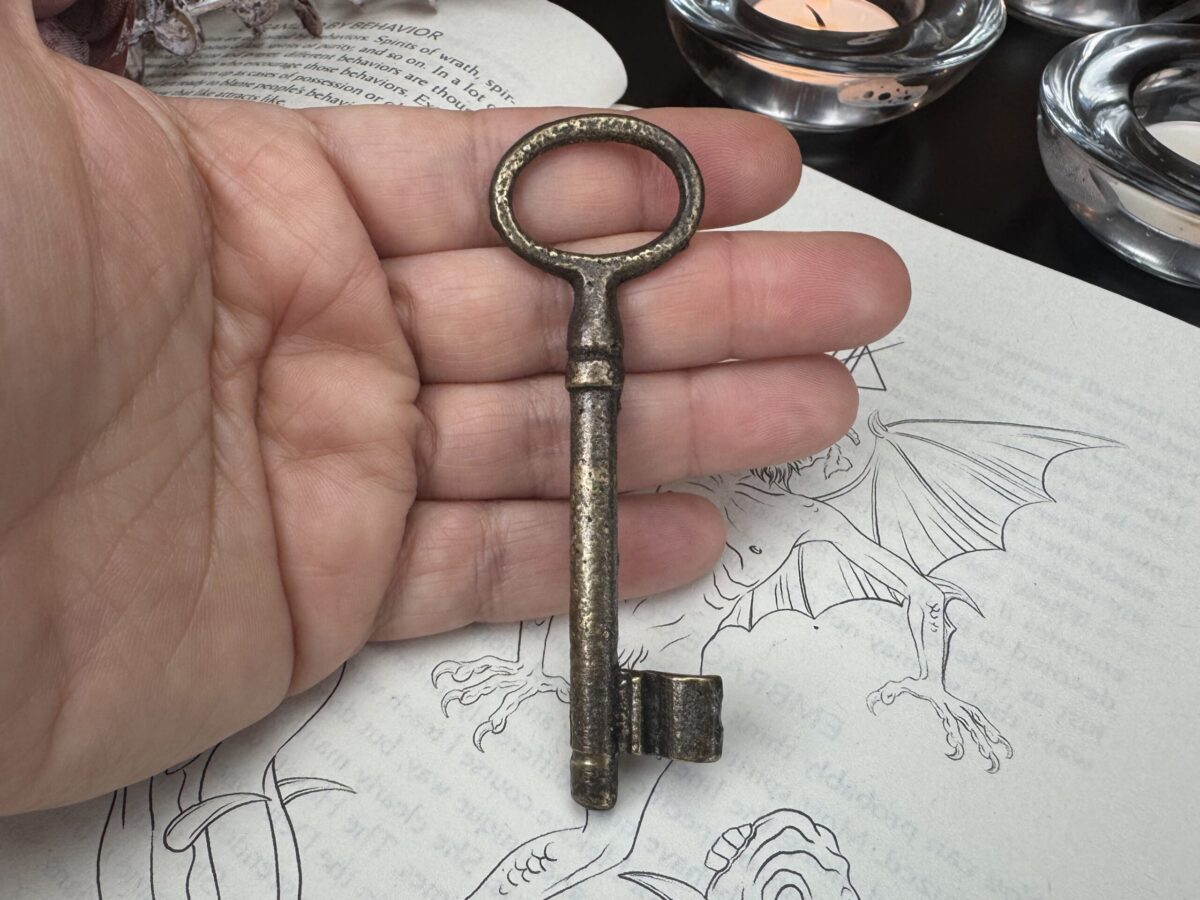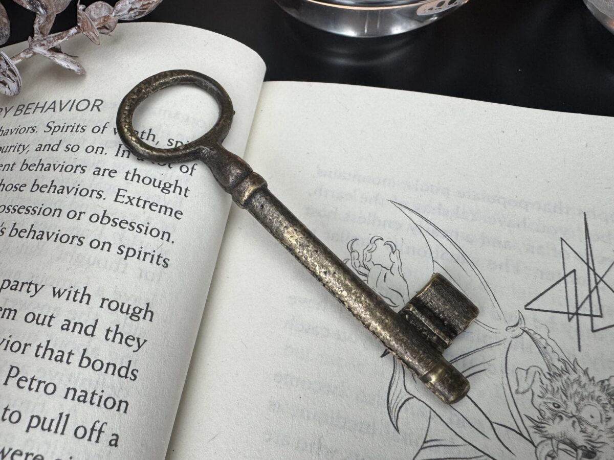 A tradição mágica sustenta que a Chave Mestra deve ser antiga, ostentando marcas naturais de uso e envelhecimento, carregando em sua essência a história das mãos que a tocaram e dos portais que abriu. Por conta disso, cada chave passa por uma leitura energética minuciosa, para desvendar a natureza da energia que carrega, compreender sua vibração única e direcioná-la adequadamente. Esse processo permite alinhar a chave ao seu propósito mágico, garantindo que se torne um instrumento poderoso e profundamente conectado ao praticante que a consagrará.