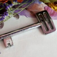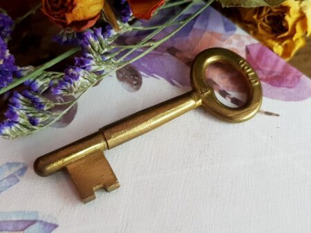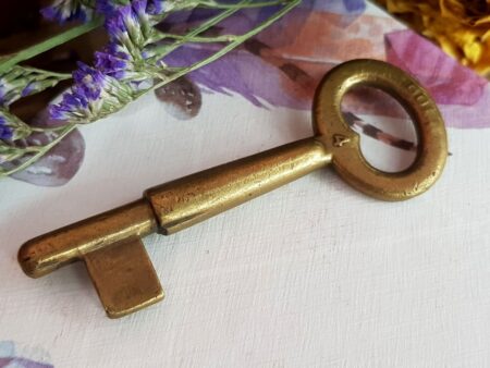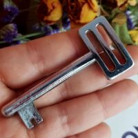 Antiga e com marcas naturais do tempo e de uso, ela provavelmente abria armário ou cristaleira daquela época. De metal, esta chave é sem dúvida uma peça carregada de história, e terá uma utilização muito especial nas mãos do praticante de Magia que sabe lidar com este tipo de instrumento.