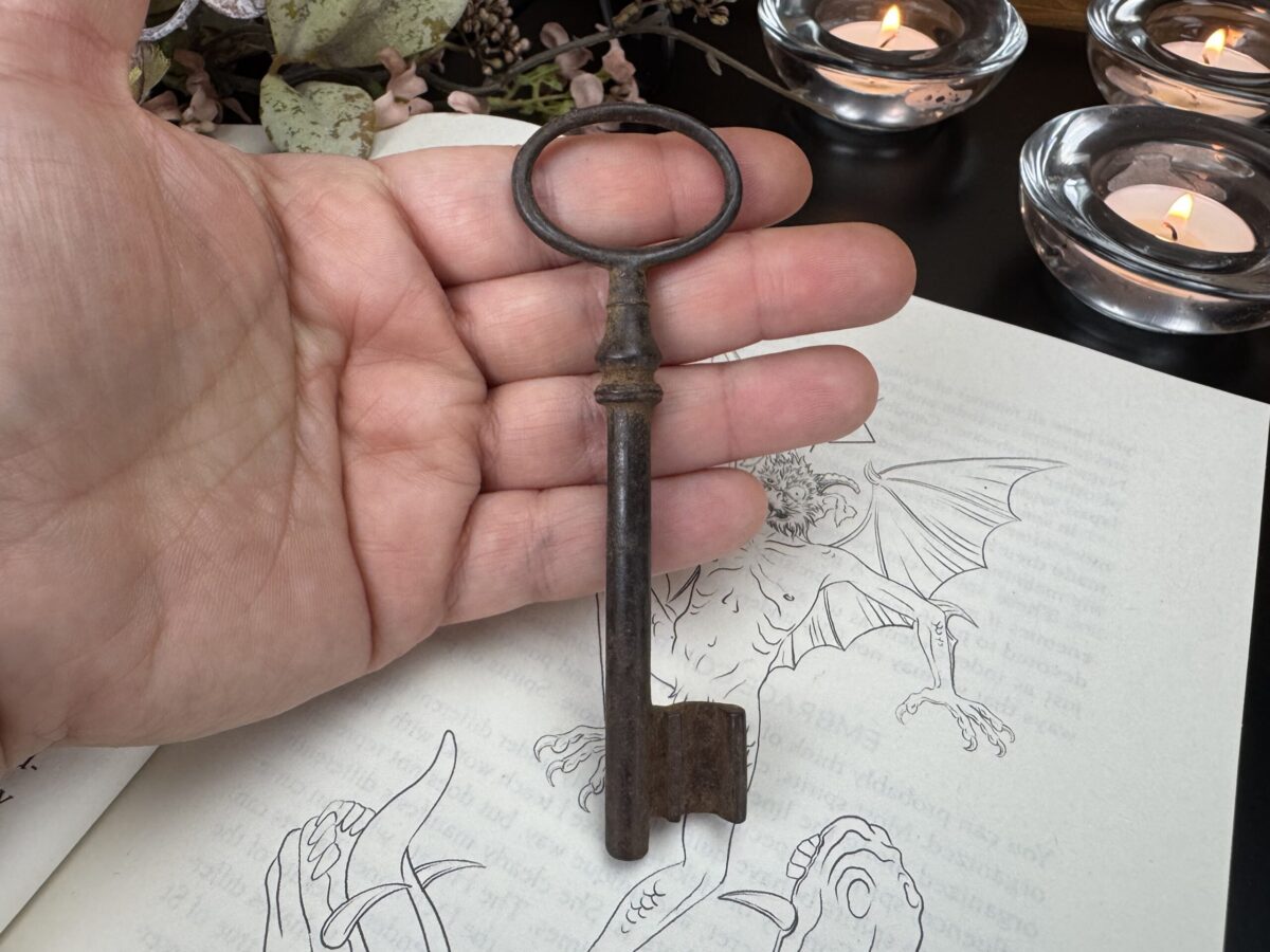 A tradição mágica sustenta que a Chave Mestra deve ser antiga, ostentando marcas naturais de uso e envelhecimento, carregando em sua essência a história das mãos que a tocaram e dos portais que abriu. Por conta disso, cada chave passa por uma leitura energética minuciosa, para desvendar a natureza da energia que carrega, compreender sua vibração única e direcioná-la adequadamente. Esse processo permite alinhar a chave ao seu propósito mágico, garantindo que se torne um instrumento poderoso e profundamente conectado ao praticante que a consagrará.