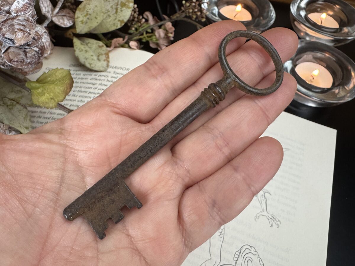 A tradição mágica sustenta que a Chave Mestra deve ser antiga, ostentando marcas naturais de uso e envelhecimento, carregando em sua essência a história das mãos que a tocaram e dos portais que abriu. Por conta disso, cada chave passa por uma leitura energética minuciosa, para desvendar a natureza da energia que carrega, compreender sua vibração única e direcioná-la adequadamente. Esse processo permite alinhar a chave ao seu propósito mágico, garantindo que se torne um instrumento poderoso e profundamente conectado ao praticante que a consagrará.