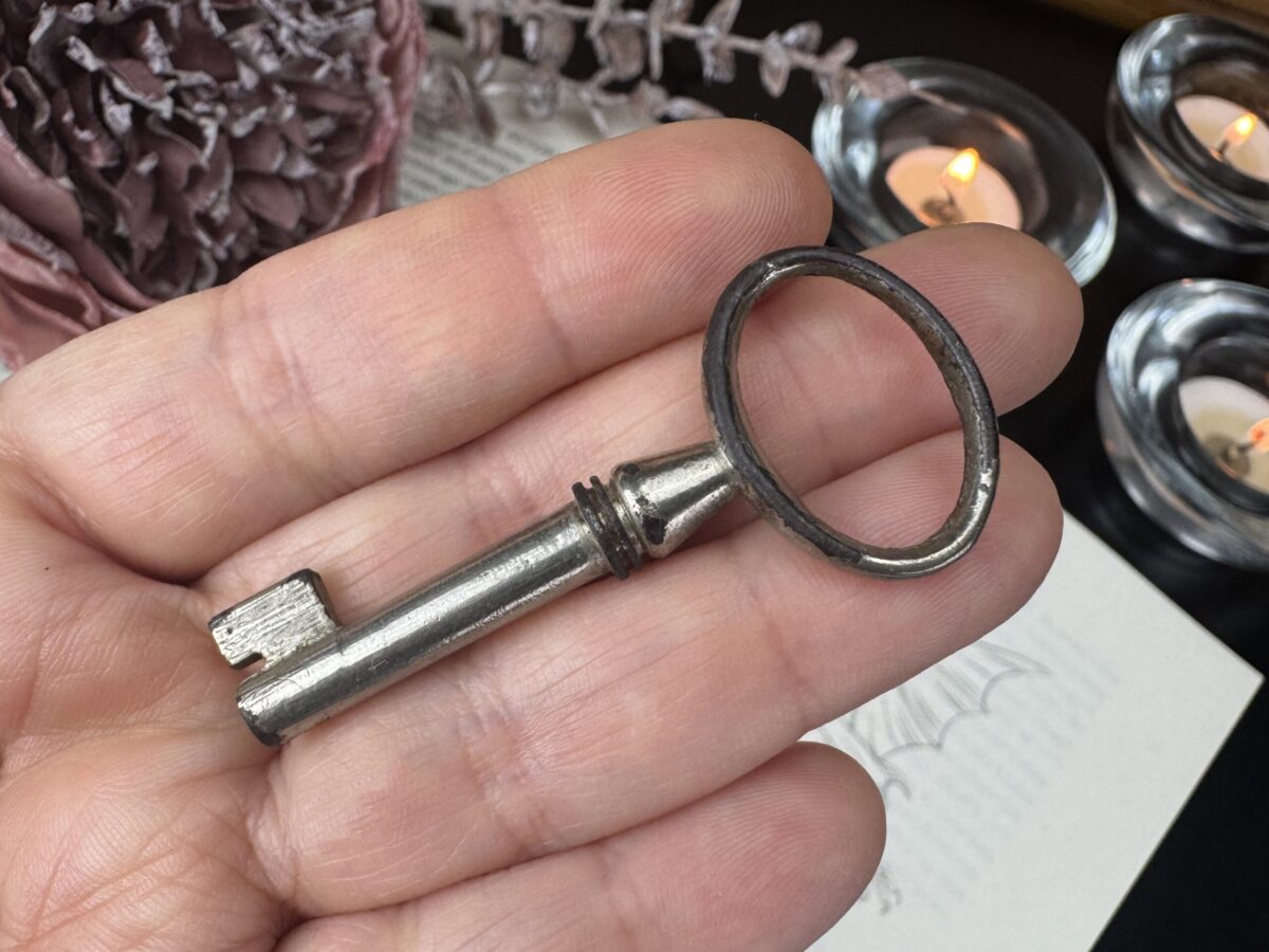A tradição mágica sustenta que a Chave Mestra deve ser antiga, ostentando marcas naturais de uso e envelhecimento, carregando em sua essência a história das mãos que a tocaram e dos portais que abriu. Por conta disso, cada chave passa por uma leitura energética minuciosa, para desvendar a natureza da energia que carrega, compreender sua vibração única e direcioná-la adequadamente. Esse processo permite alinhar a chave ao seu propósito mágico, garantindo que se torne um instrumento poderoso e profundamente conectado ao praticante que a consagrará.
